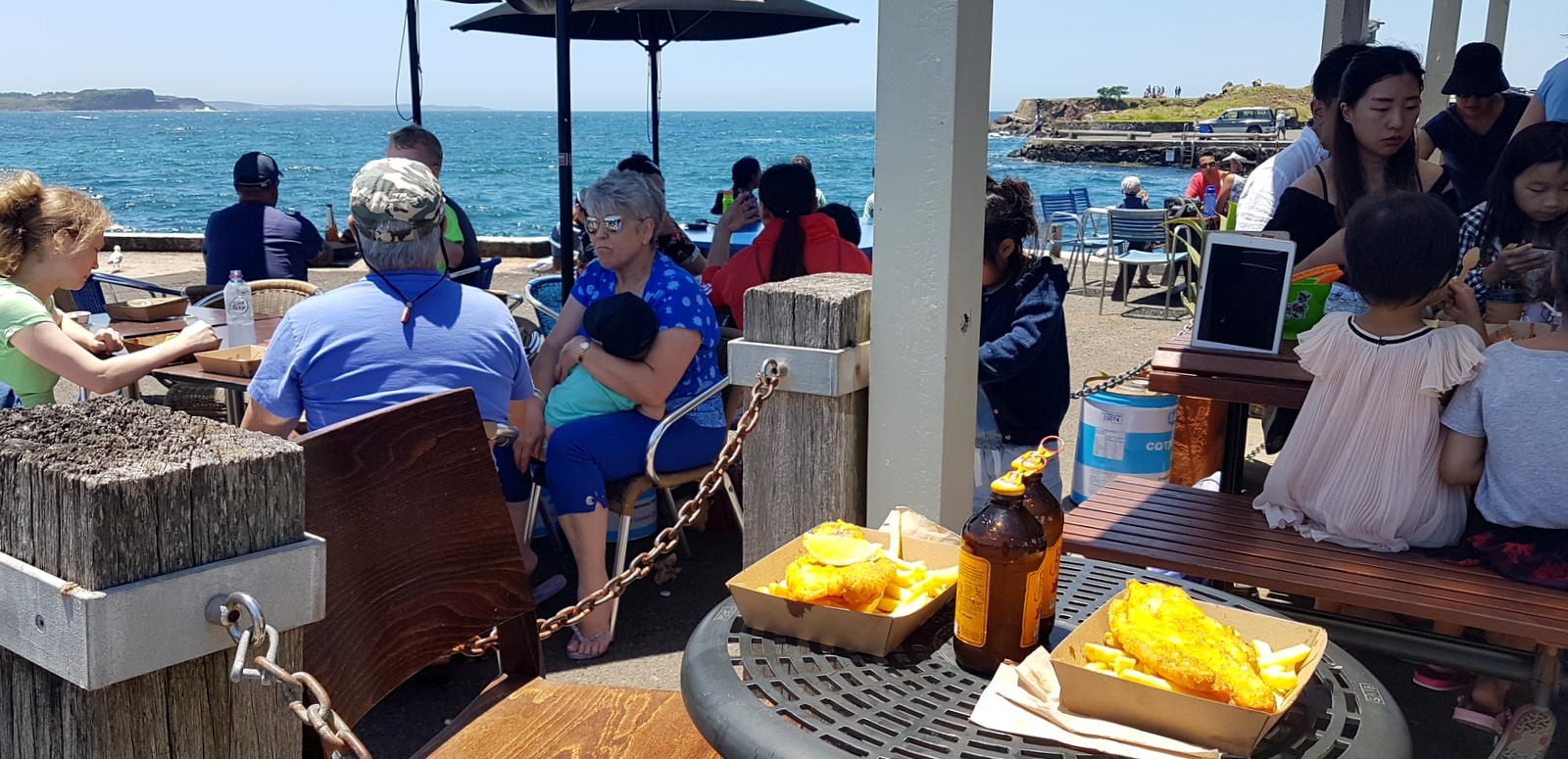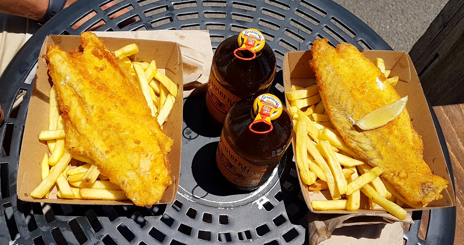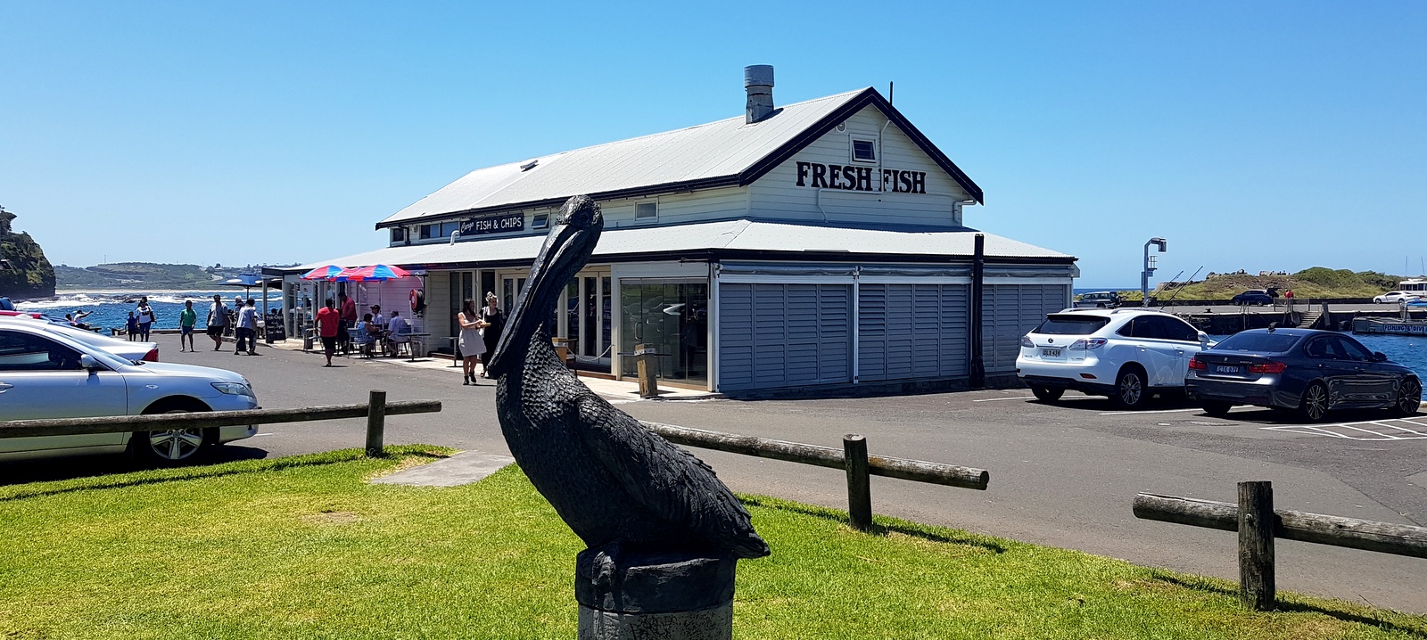 – Kiama est réputée pour son poisson frais et le Cargo Fish & Chips au 1 Kiama Wharf, NSW 2533 (sur la même presqu’ile que le Blowhole) ne nous a pas déçus. toujours le même principe: on choisit son poisson sur l’étal, sa cuisson, il nous est servi avec des frites dans une boite en carton et on va le déguster sur la terrasse au bord de l’eau… on est fans!