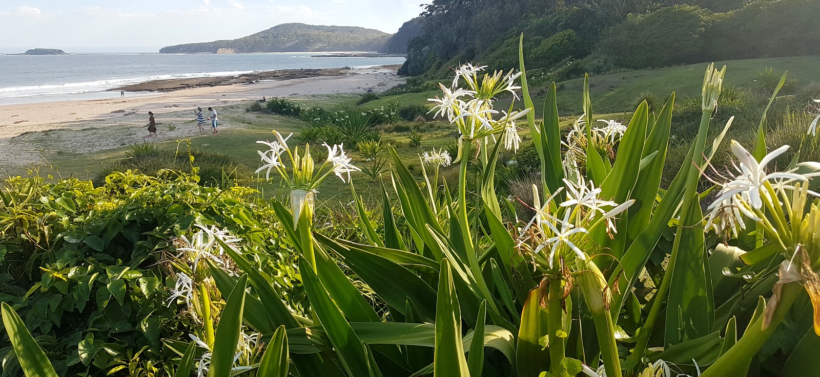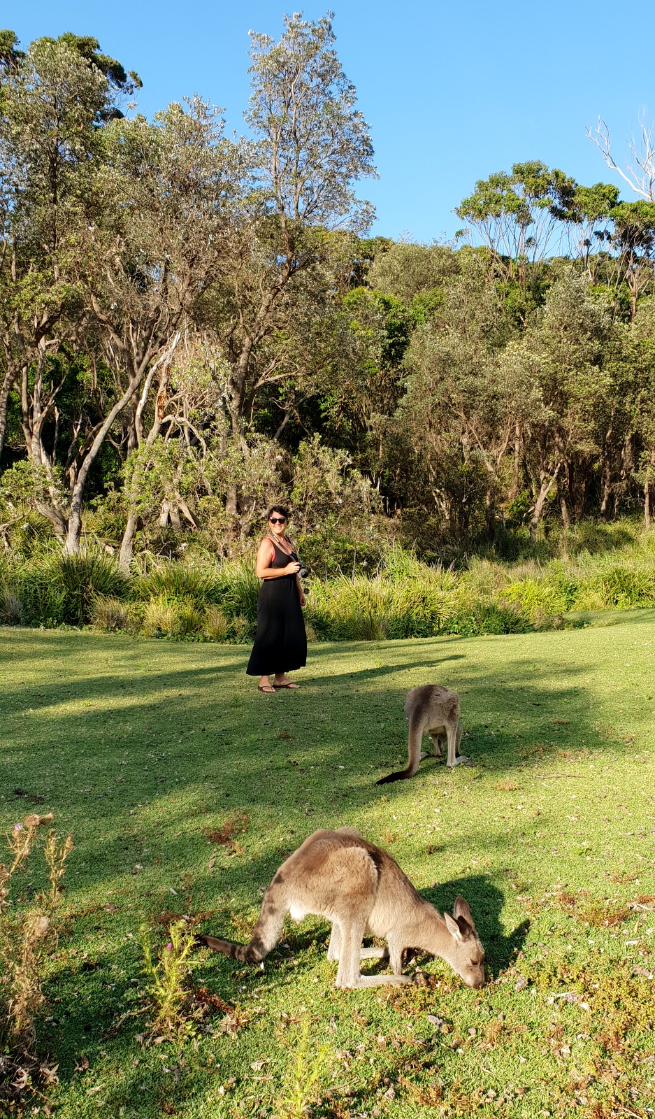 Imaginez… une plage magnifique de sable blanc bordée par une végétation digne du jardin d’Eden: une « pelouse », des arbustes, des lys sauvages partout qui embaument… et on rajoute au tableau: des kangourous, peu farouches, qui se baladent librement au milieu de nuées de perruches arc-en-ciel… Une vraie vision de paradis !!!
