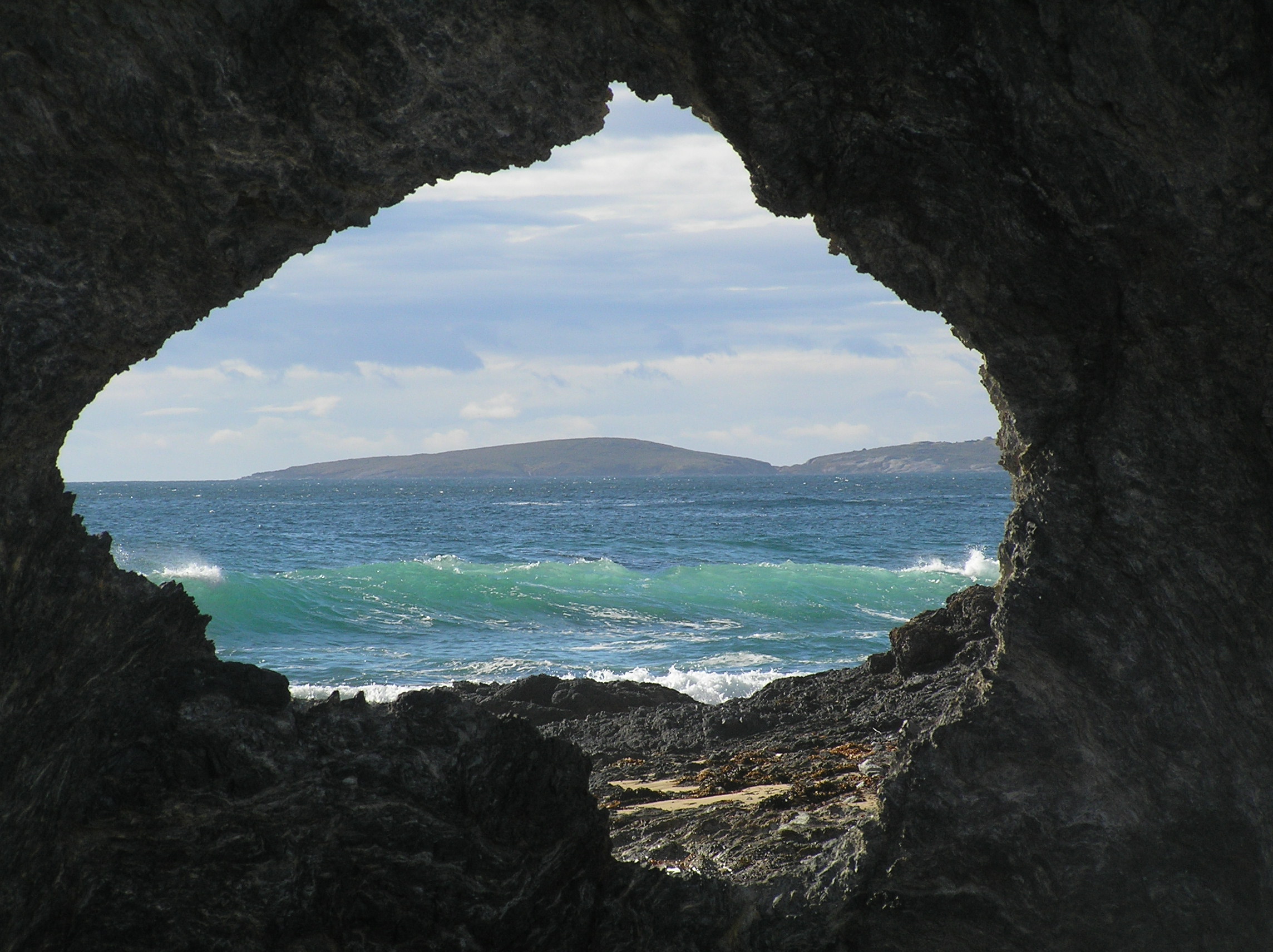 – The GLASSHOUSE ROCKS, surnommé l’AUSTRALIAN ROCK, une formation rocheuse dont on ne savait pas qu’elle était tellement connue et que beaucoup de personnes viennent à Narooma pour la voir. C’est un immense rocher vertical percé d’un trou qui ressemble étrangement au plan de l’Australie, d’où son surnom. On peut l’approcher, monter dessus et y faire des photos…