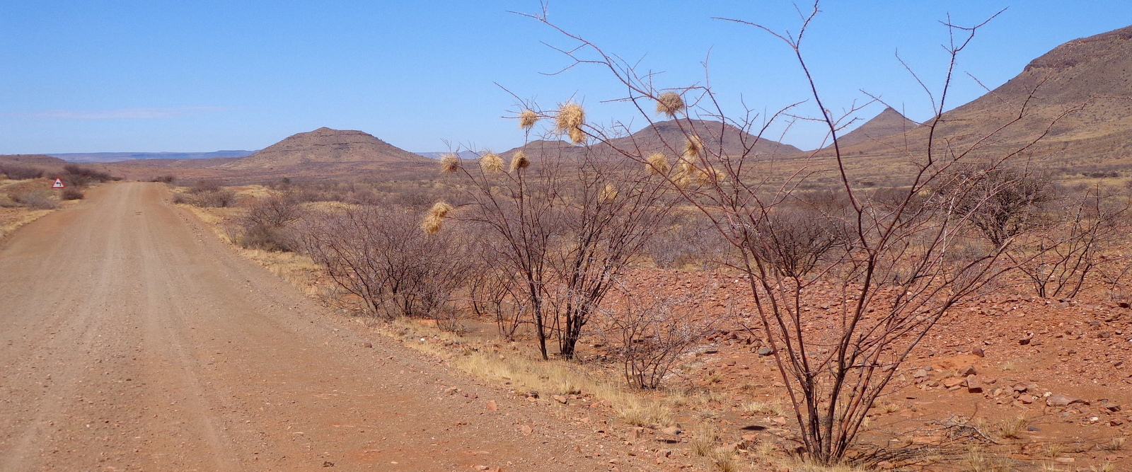 Dès la sortie de REHOBOTH, la route goudronnée se transforme en piste comme 80% des routes en Namibie. En avant pour l’aventure… Le paysage s’étale à perte de vue sans âme qui vive. On s’arrête plusieurs fois le long du chemin pour s’imprégner de cette immensité.