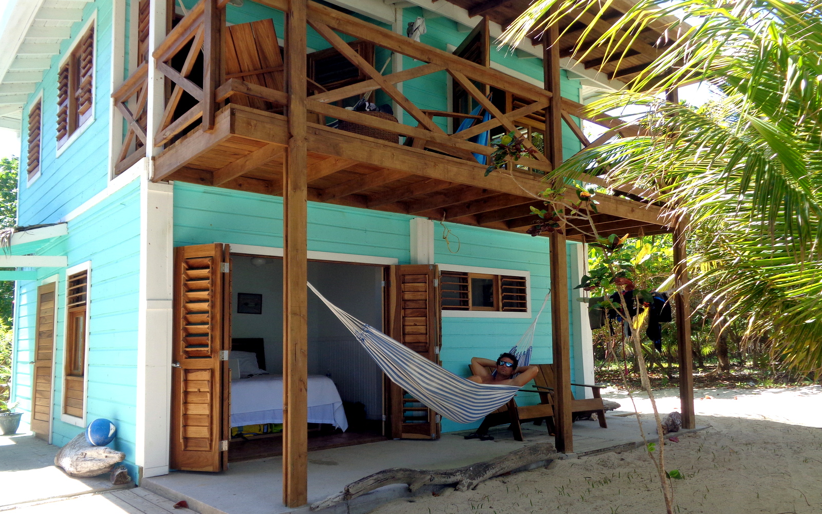 On avait la chambre Seagrape, la plus près de la mer, à 100€ la nuit. On aurait préféré une des 2 cabanas, la Sunset ou la Sunrise mais elles sont réservées en premier et ça se comprend, car pour 40€ de plus, on a un vrai appartement avec cuisine, 2 chambres et une grande terrasse.