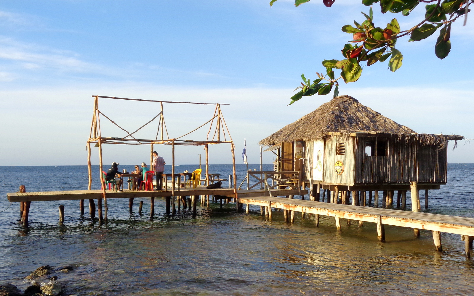 Le restaurant des îles tel qu’on se l’imagine: tout en bois, sur pilotis, sur la mer, c’est vraiment la carte postale…