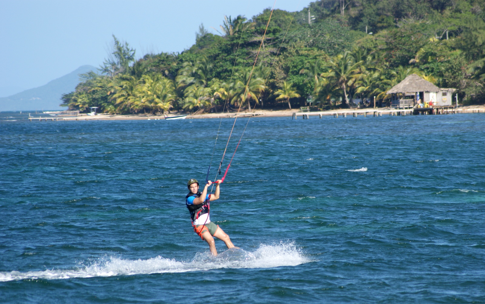 Le vent souffle entre 15 et 25 nœuds quasiment toute la journée en se renforçant le soir. Il est side shore comme partout à Roatan. Plan d’eau un peu clapoteux, choppy comme disent les américains. La taille de voile idéale est de 9 et 12 m2.
