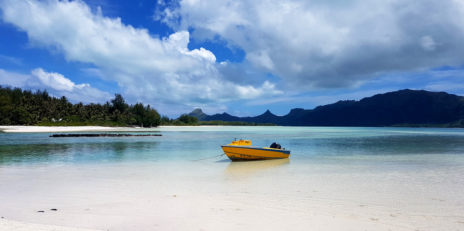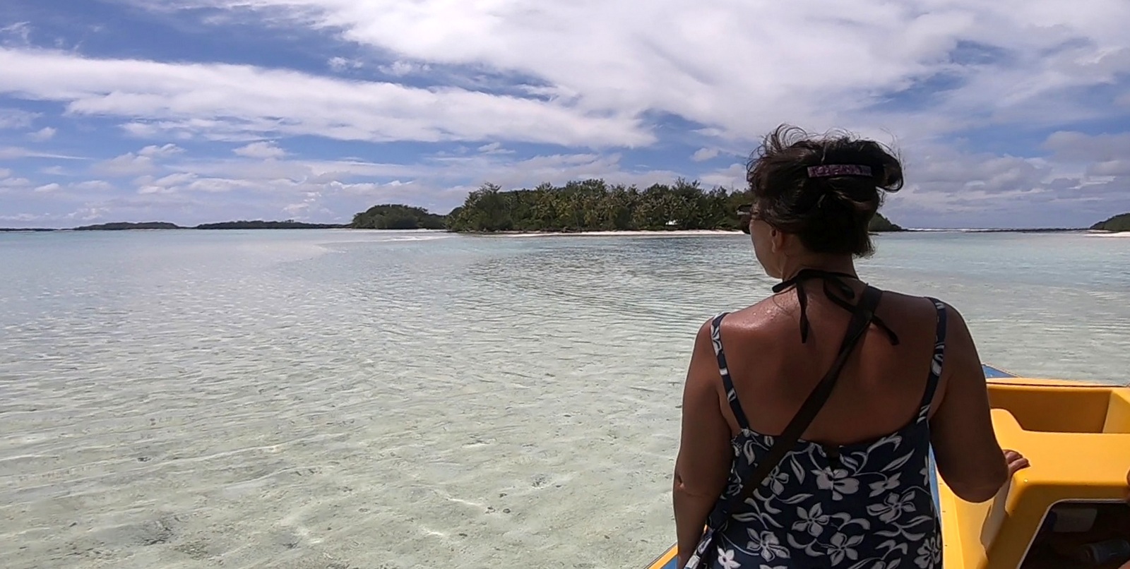 C’est le gendre d’Eléonore qui nous a emmenés avec son bateau et on a embarqué sur la plage juste devant la pension. Pas de surprise quant au trajet d’environ 1h ni à l’arrivée sur le motu parce qu’on y était déjà allés pour le pique-nique pendant l’excursion sur le motu piscine.