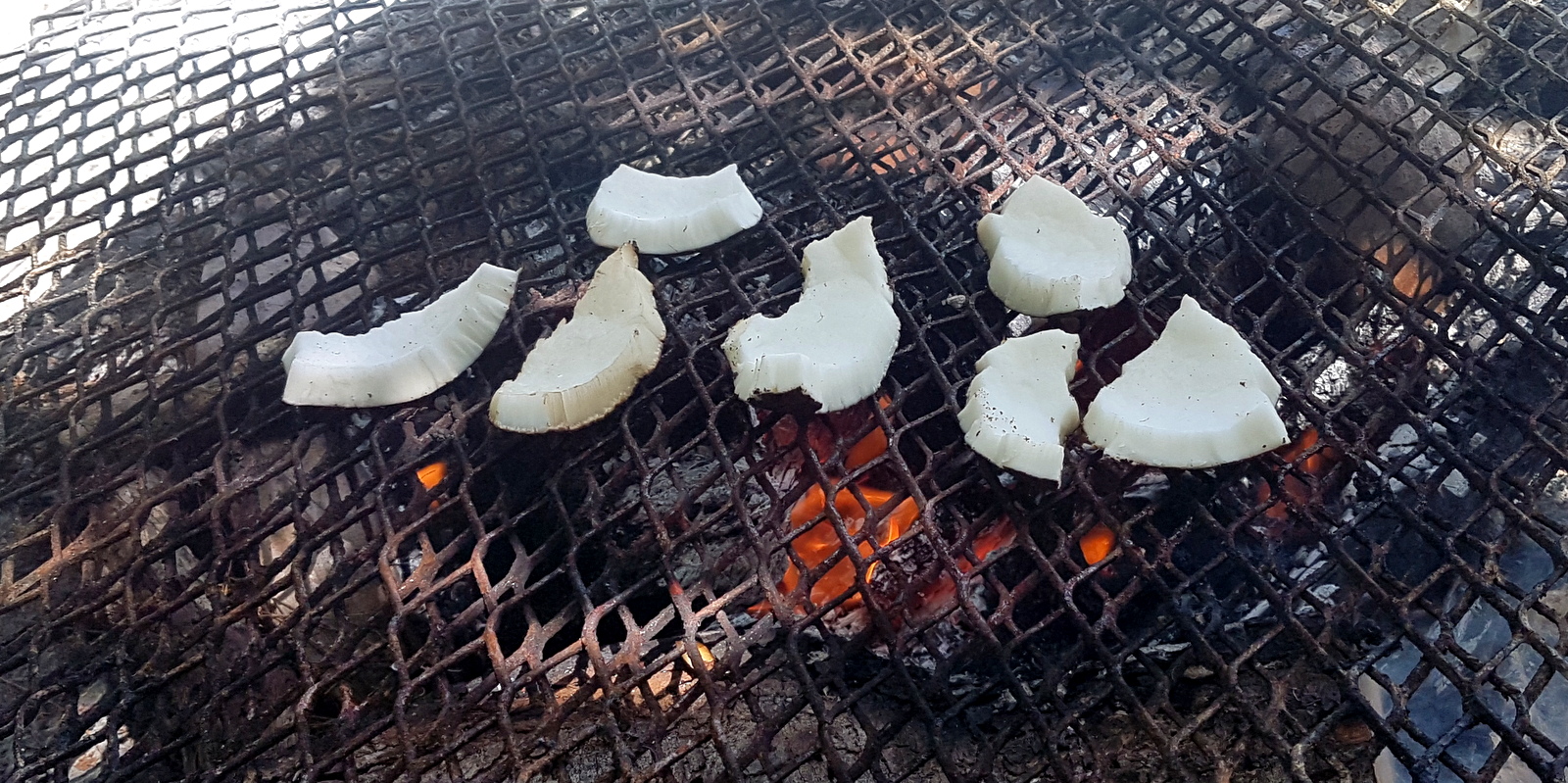 – quand elle est marron et qu’il n’y a plus de bruit quand on la secoue, on va donc utiliser sa chair. Les polynésiens la mangent surtout râpée, mélangée à leurs plats et très peu telle quelle comme on peut nous le faire. Quand ils la mangent nature, c’est grillée, principalement à l’apéritif. Après avoir mangé des « tonnes » de coco nature, c’est sur ce motu que j’ai découvert la coco grillée et c’est fameux !!! Elle prend alors un petit goût de noisette très très agréable….