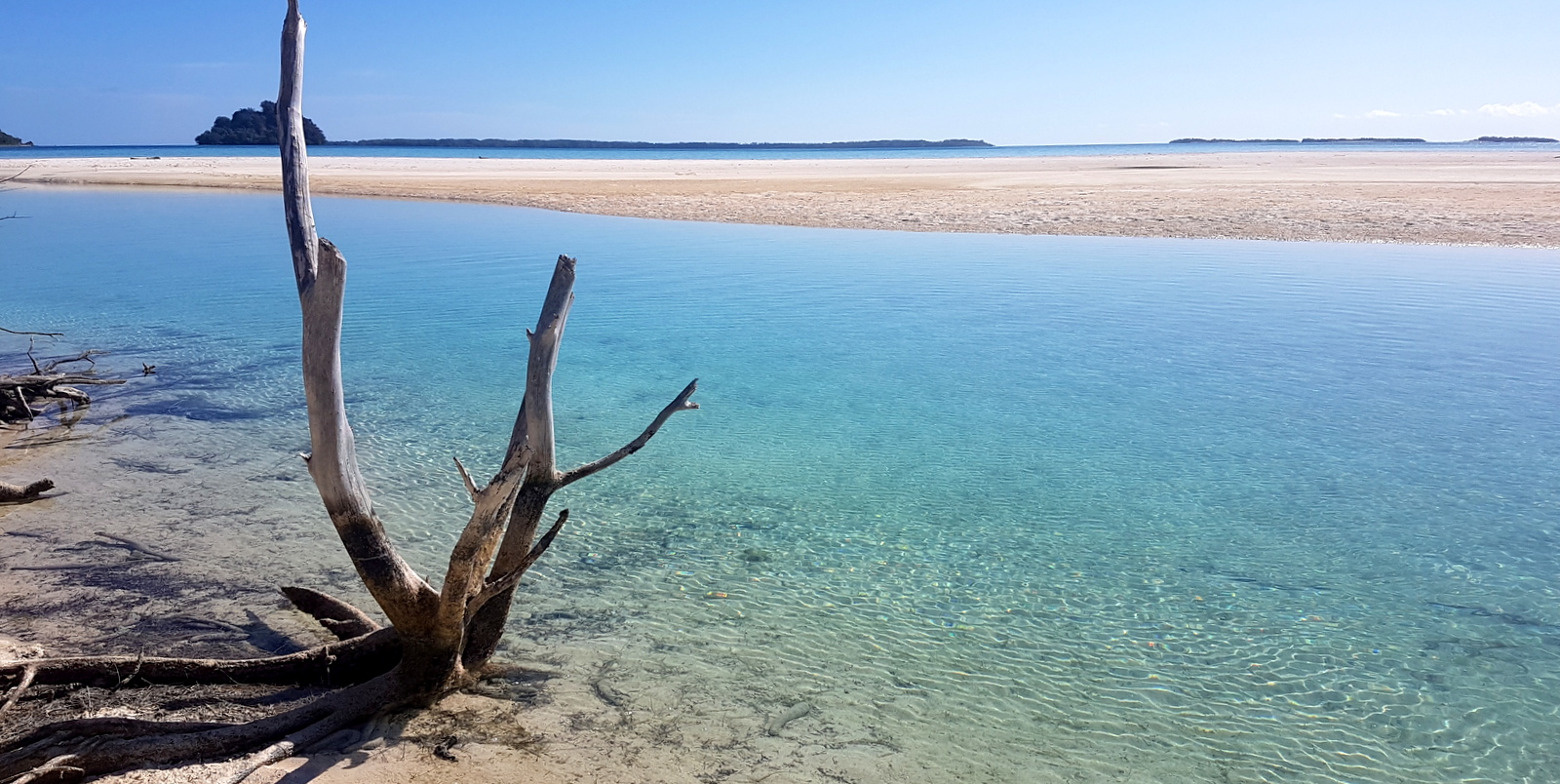 Il est plutôt facile d’y aller en passant à pieds sur les bancs de sable. Il n’y a qu’un endroit où on doit nager parce que l’eau est trop profonde, heureusement on a anticipé en prenant un sac étanche mais ça ne dure pas longtemps et on aurait pu le mettre sur la tête…