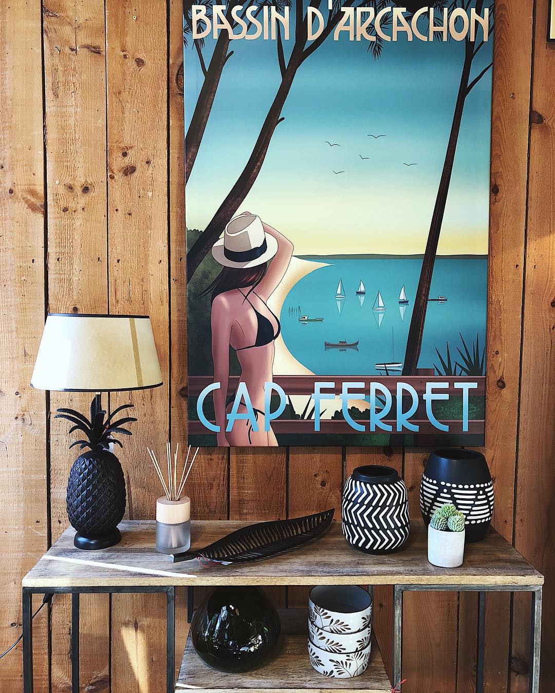 Et pour finir le sujet Cap Ferret sur une note artistique, j’aimerais vous faire connaître Popette, une artiste locale dont les illustrations style « vintage », années 30 représentent si bien l’ambiance du Bassin… Ses tableaux sont tous proposés en 3 exemplaires, fournis avec un certificat d’authenticité.