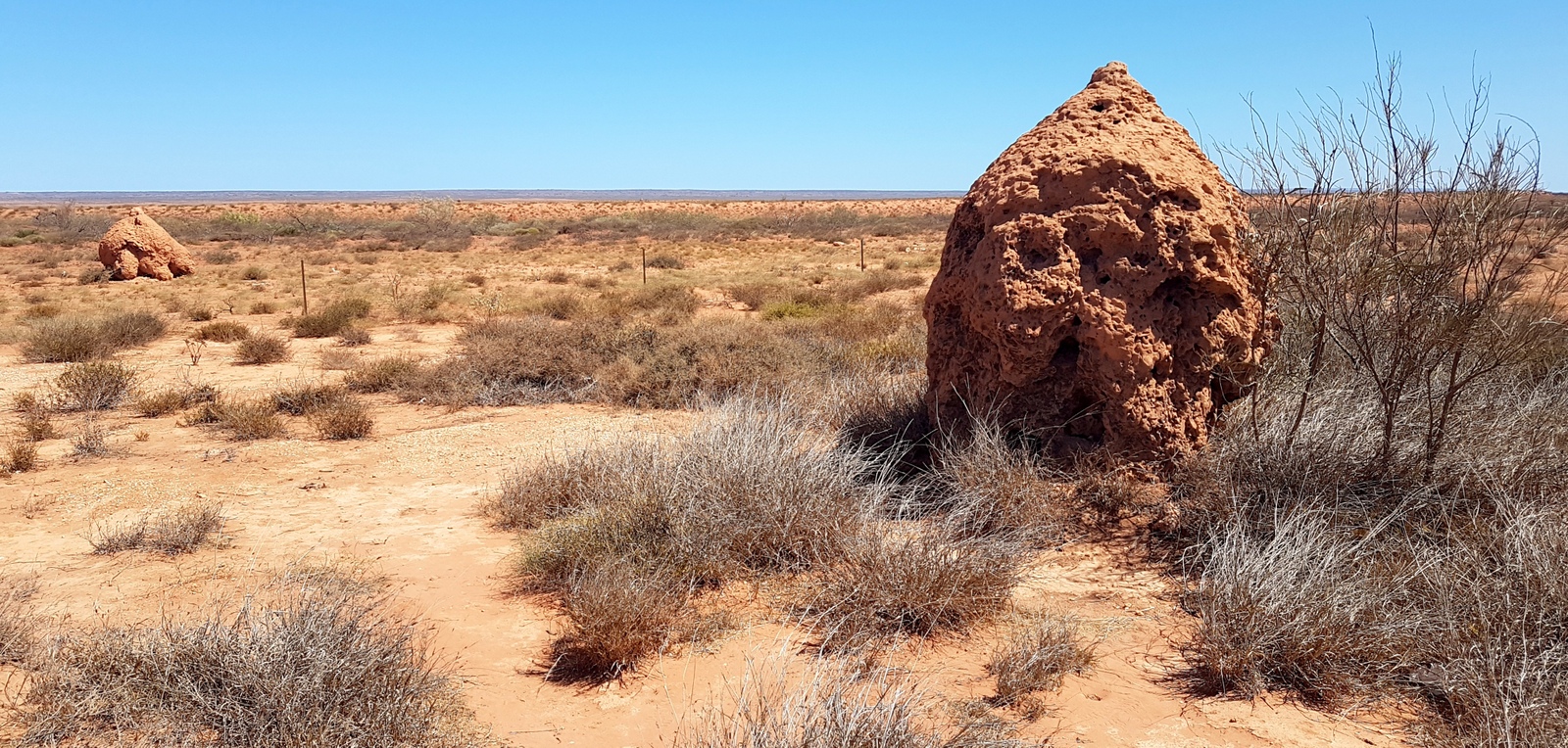 Quand on reprend la route depuis Coral Bay vers Exmouth, un spectacle inattendu nous y attend: des milliers de termitières!