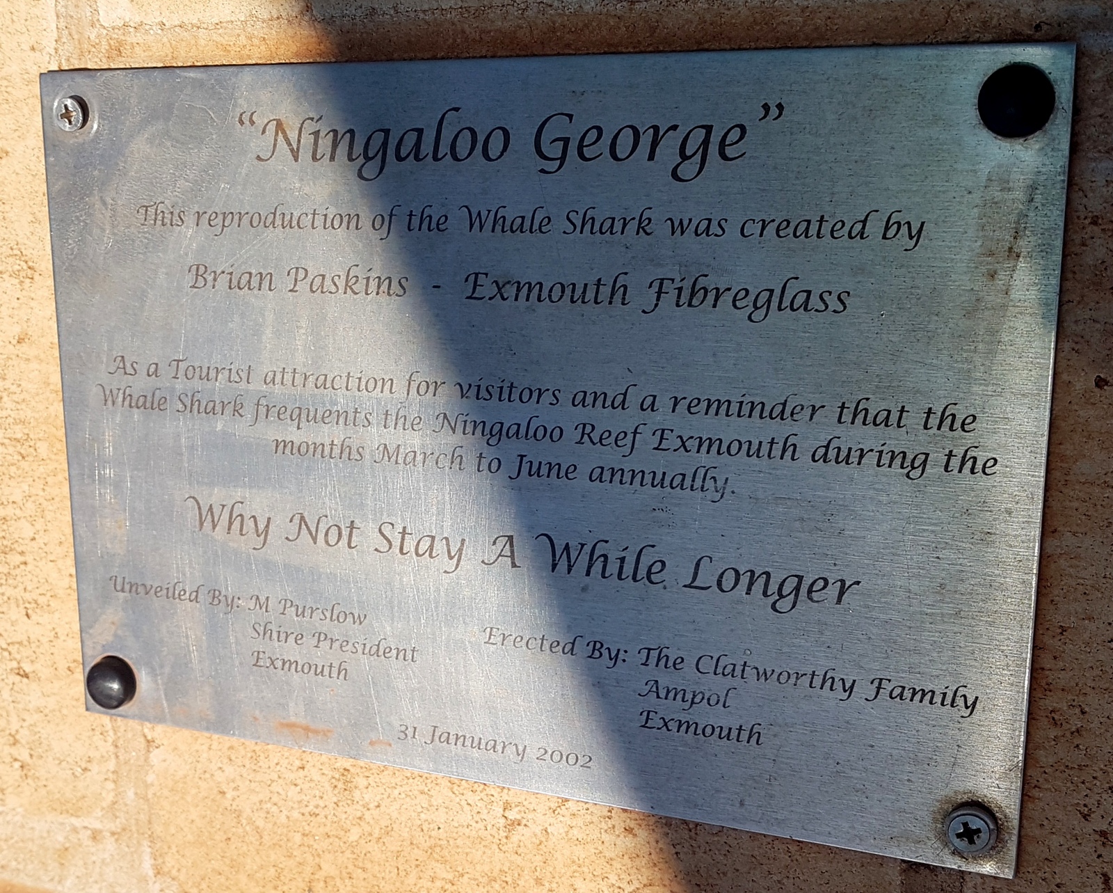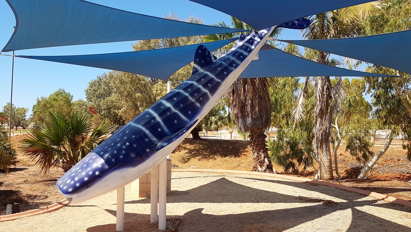 Exmouth a beau être une petite ville, elle est une des rares à posséder 2 « Big Things »! C’est aussi une des rares, sinon la seule à exposer une « Big Thing » plus petite que la réalité avec ce requin baleine de 5m alors que ces gentils géants régulièrement aperçus le long du Ningaloo reef sont nettement plus grands!