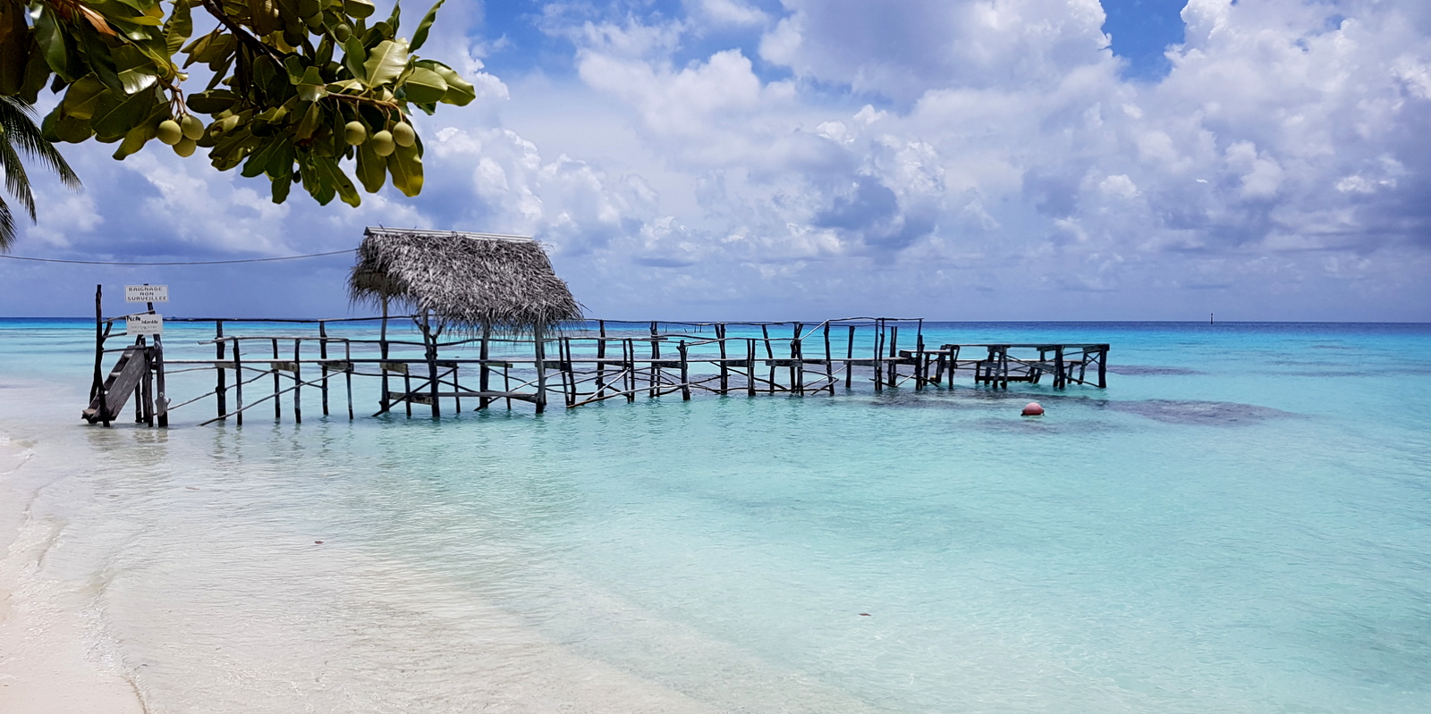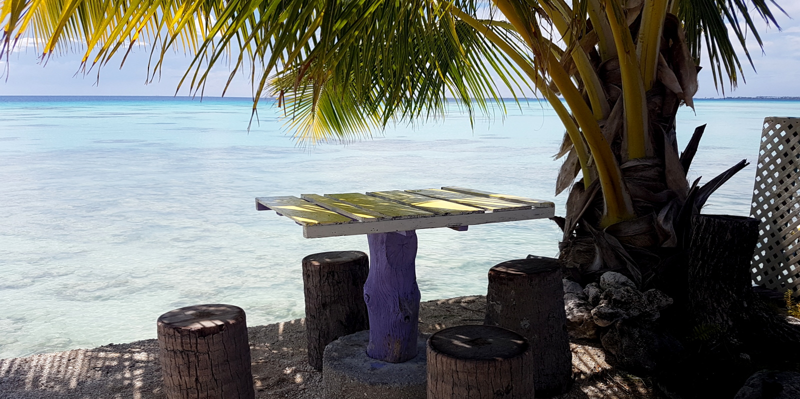 Notre choix sur cette pension s’est un peu fait par défaut mais nous ne l’avons pas regretté une seconde! On nous avait recommandés la PENSION VAIAMA VILLAGE qui partage avec la PENSION TOKERAU la plus longue plage de sable blanc de l’atoll.
