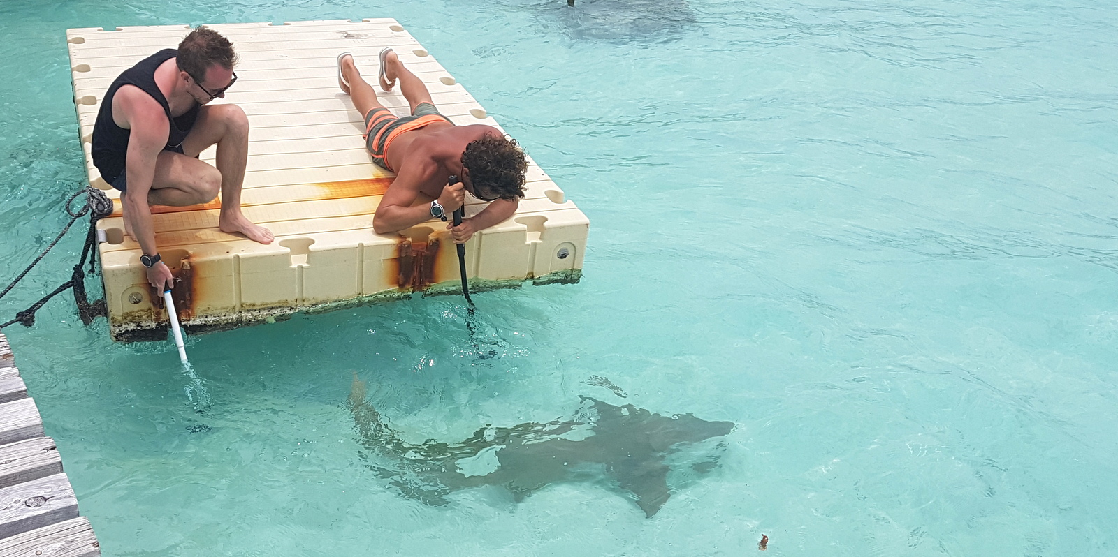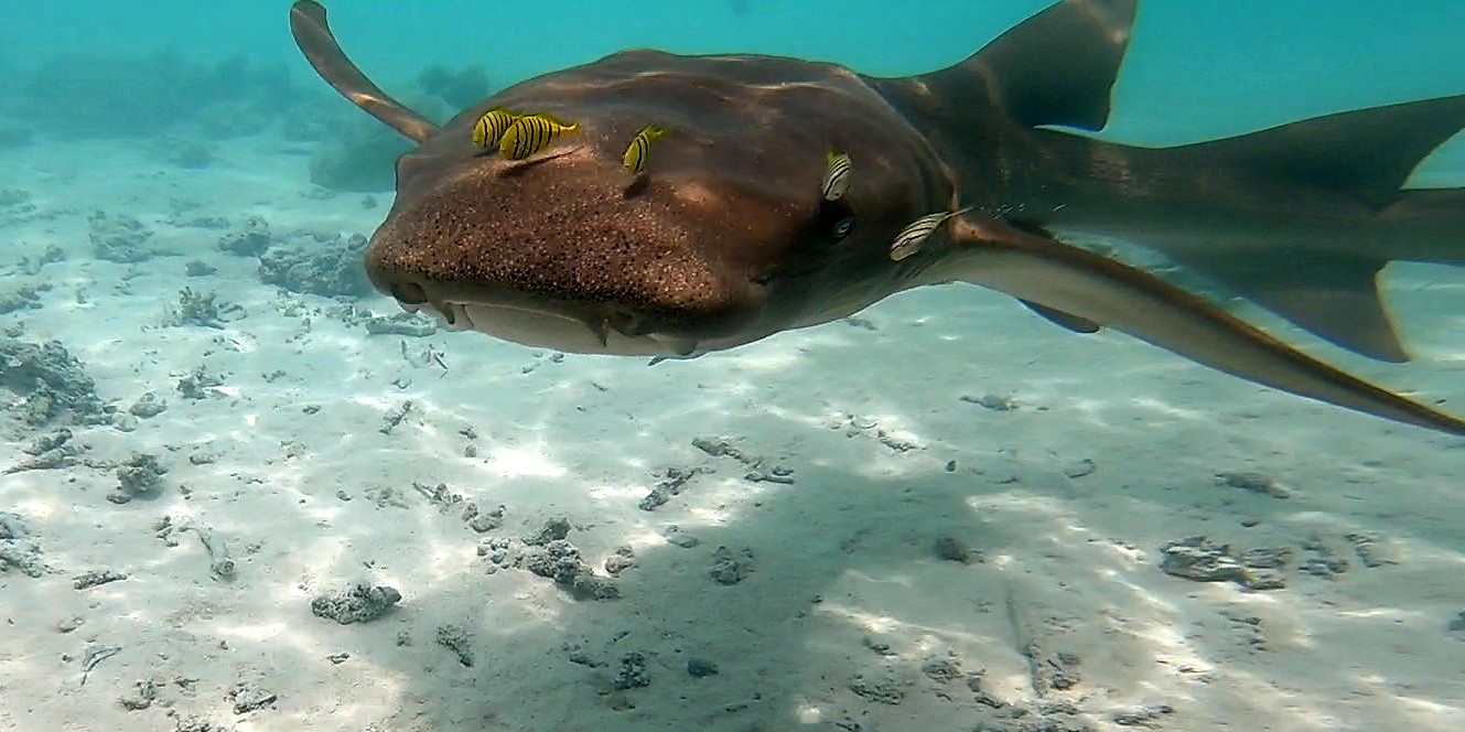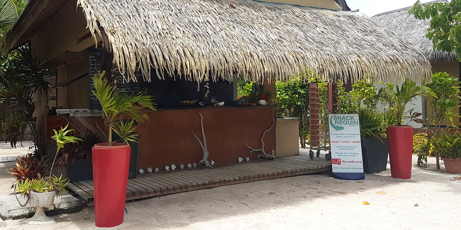 Le SNACK DU REQUIN DORMEUR doit son nom à plusieurs requins nourrices qui ont élu domicile entre le lodge et le restaurant LA PAILLOTTE (fermé au moment de notre passage). Totalement inoffensifs puisqu’ils se nourrissent par succion comme les raies, on peut nager avec eux en gardant tout de même ses doigts loin de leur bouches (ils ont une puissance d’aspiration qui équivaut à celle de 9 aspirateurs!).