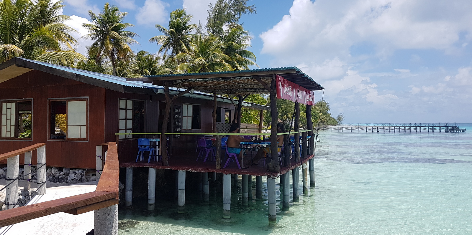 CHEZ ELDA partage la même configuration que le précédent avec une terrasse donnant sur le lagon. Plats bons, simples et généreux à l’image du Korikori.