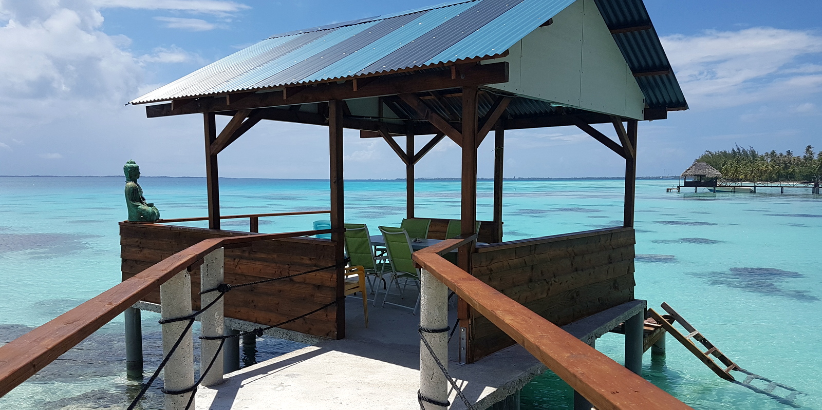 Des amis à Rangi nous avaient conseillé le RELAIS MARAMA qui semble être le repaire des plongeurs pour un prix plus doux qu’ailleurs mais il se situe côté océan sur le récif et après Rangiroa et son manque de plages, on rêvait de sentir à nouveau le sable entre nos orteils!!! C’est là où nous serions allés si nous n’avions pu avoir de place à Tokerau car nous n’en avons entendu que du bien…