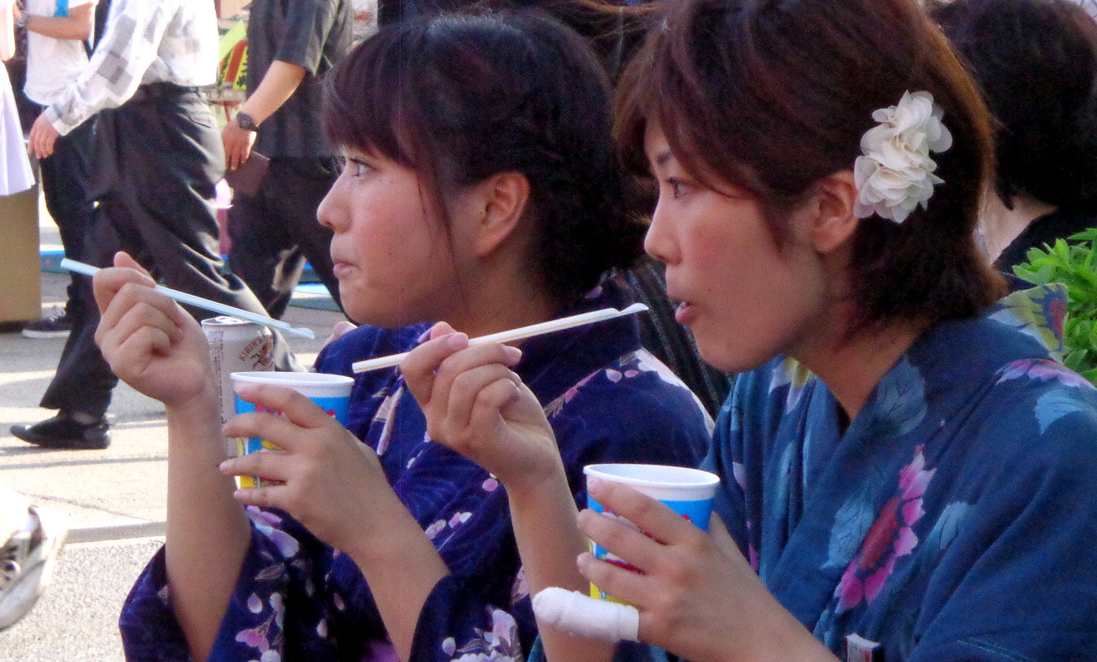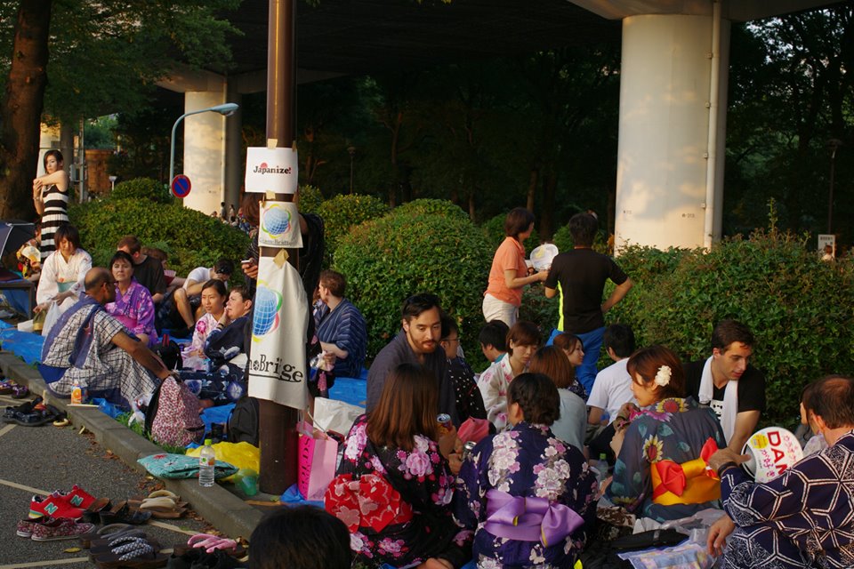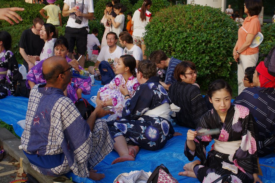 J’ai eu l’occasion d’assister au feu plusieurs fois mais la dernière fois, l’an dernier, j’ai voulu vivre l’événement à la locale en portant le yukata. Si vous avez eu un jour envie de porter un kimono, c’est le jour où jamais pour vous lancer car tout le monde porte ce vêtement traditionnel et on se sent même un peu « déplacé » vêtu à l’occidental.