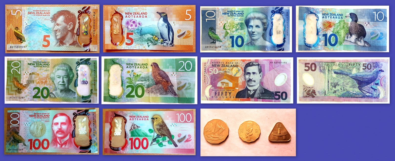 Si vous avez la chance d’avoir un billet de 3 NZ$, gardez le précieusement, ils sont devenus collectors car introuvables même dans les banques. Les pièces sont les mêmes qu’en Nouvelle-Zélande sauf pour 3 pièces spéciales fondues sur place: une pièce à 12 côtés (dodécagone) de 5 NZ$, une pièce triangulaire de 2 NZ$ et une dentelée de 1 NZ$. Elles sont très fréquentes sur Aitutaki, beaucoup moins sur Rarotonga et sont elles aussi collectors et très recherchées….