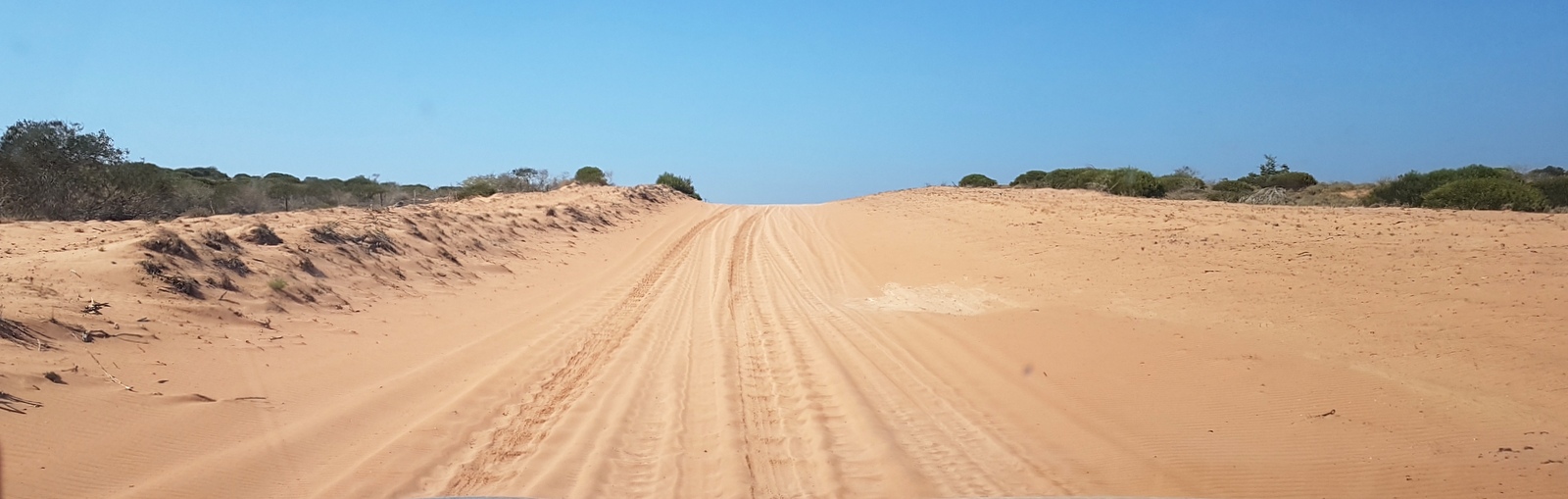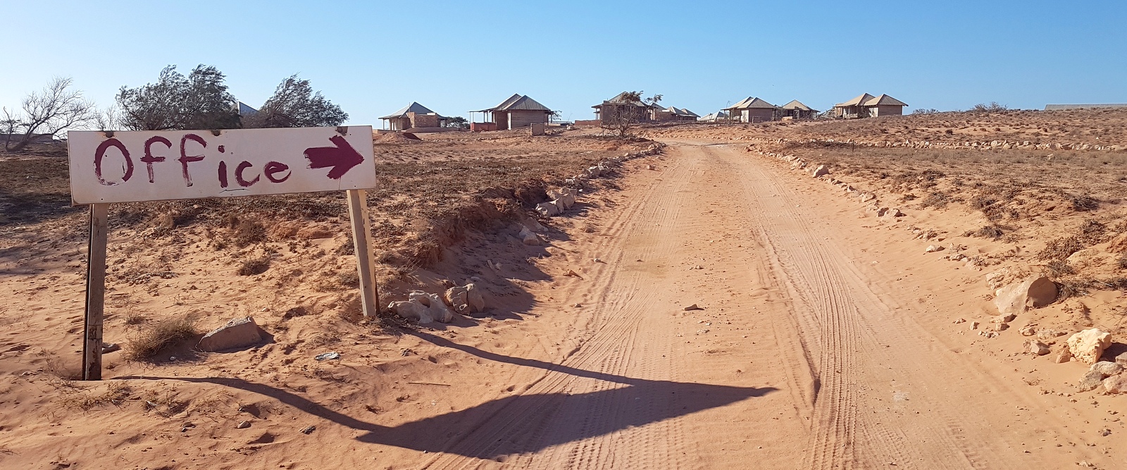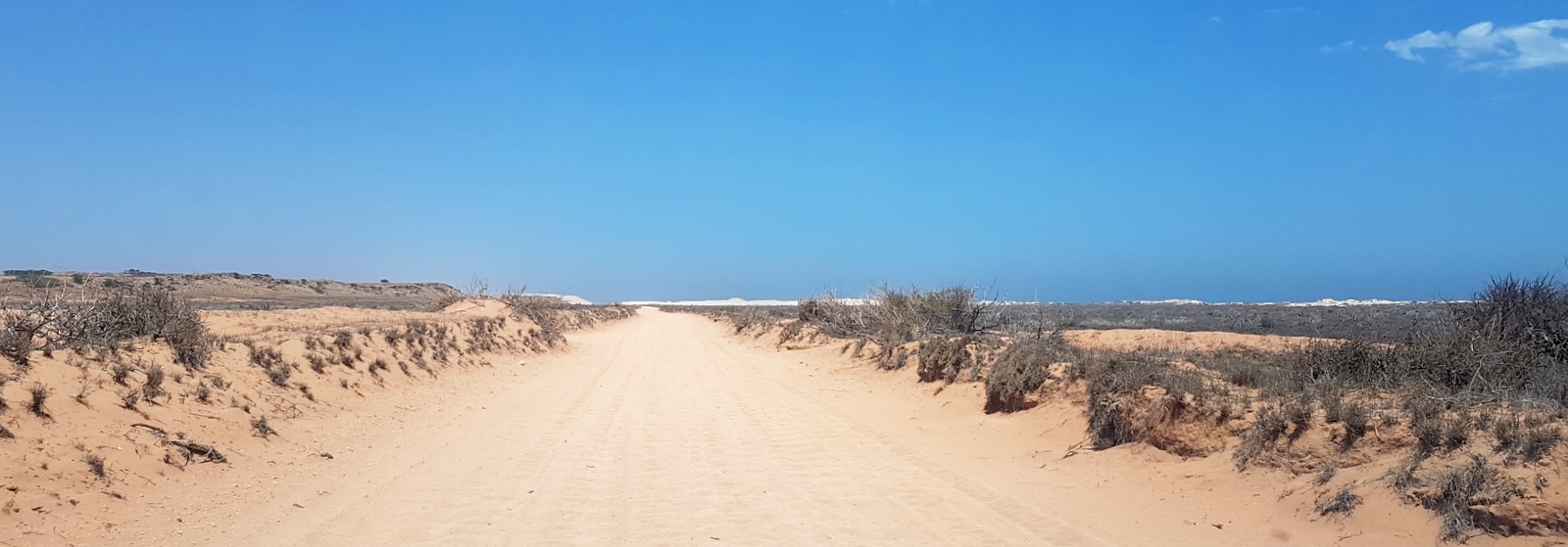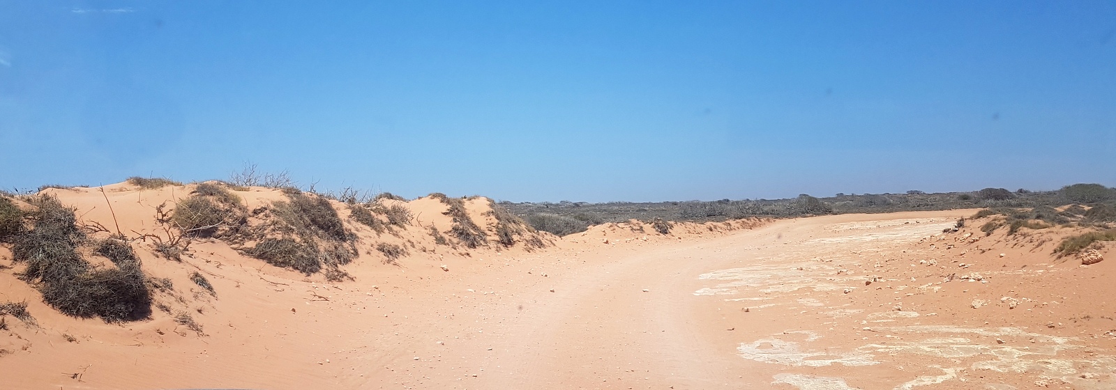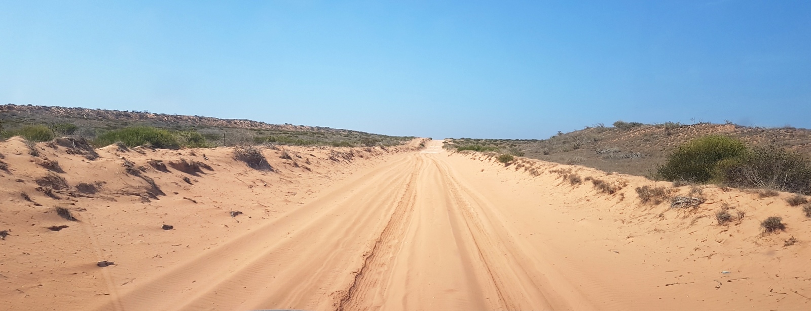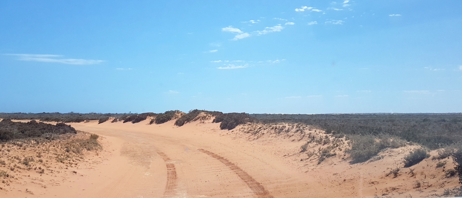 La piste continue jusqu’à la station… De plus en plus de sable, toujours plus d’animaux qui traversent….