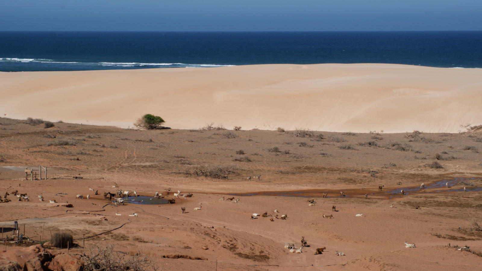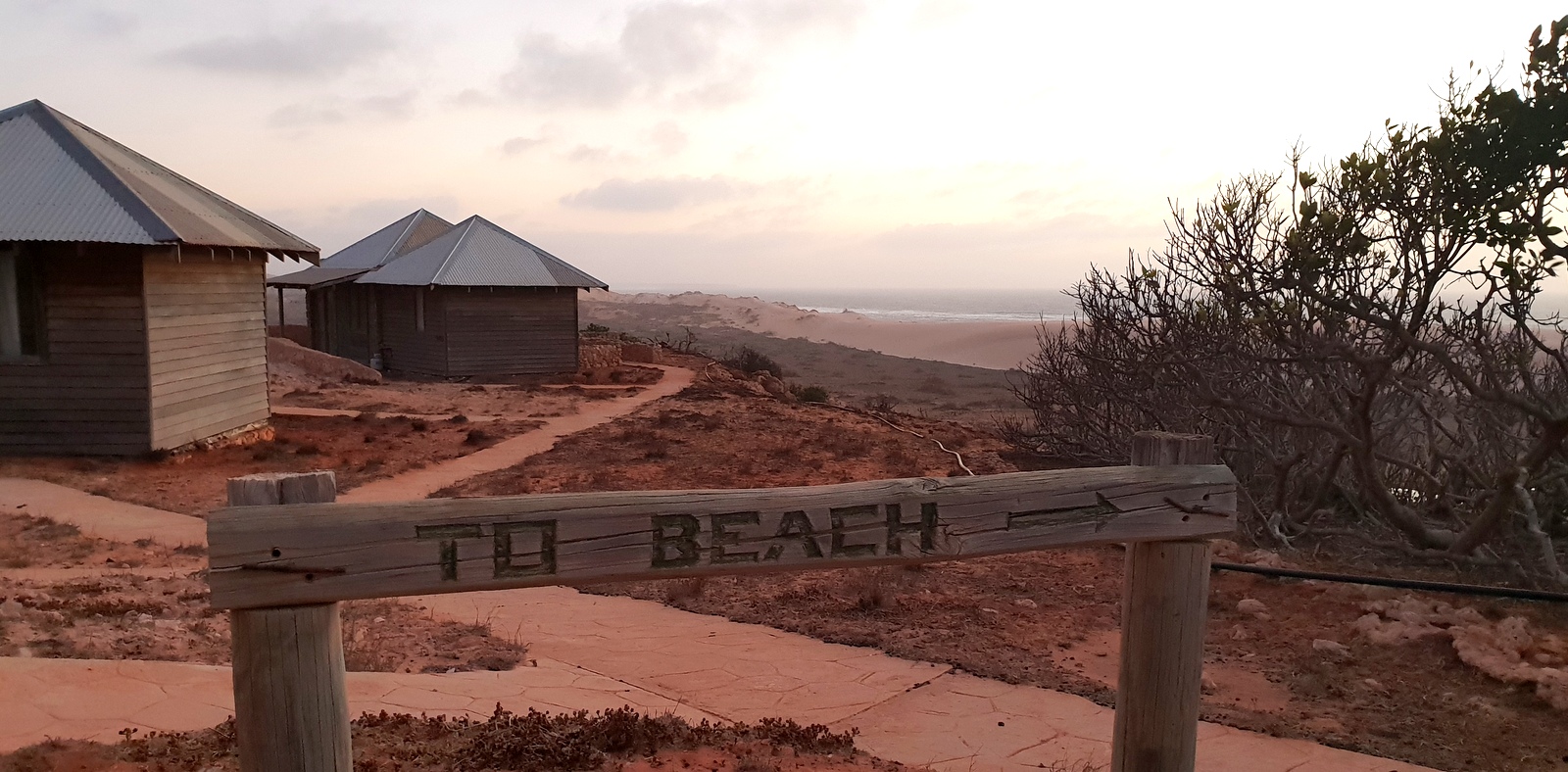 Les chalets sont séparés de l’océan par une immense dune au pied de laquelle il y a une mare et un puits qui sont visités toute la journée par tous les animaux du coin: moutons, chèvres, émeus, kangourous… on se croirait dans une réserve africaine!