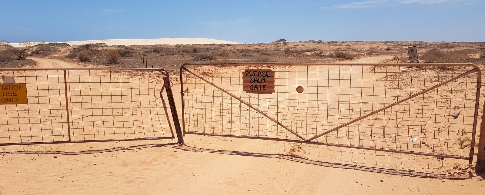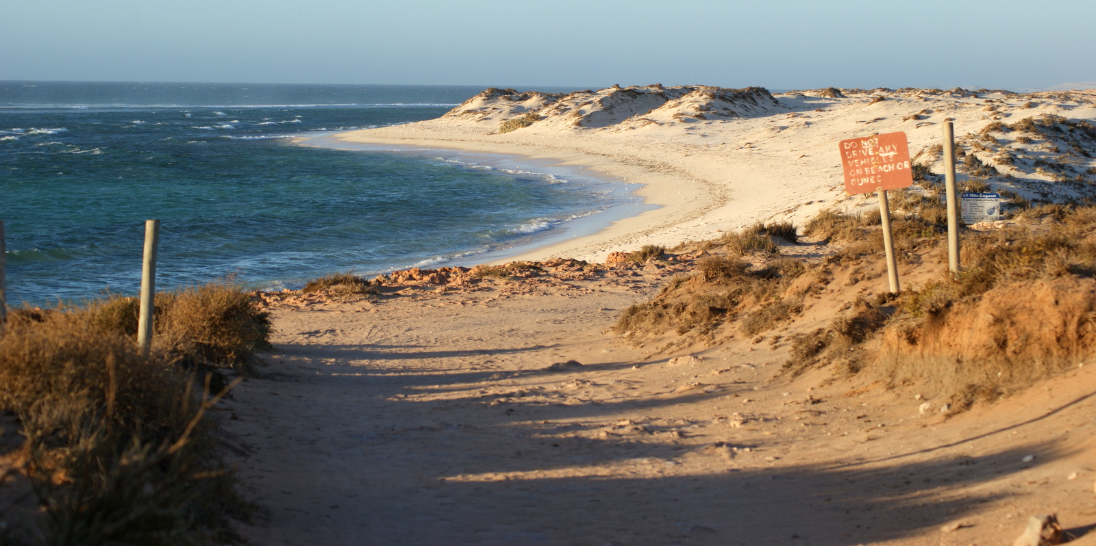 LA plage de Gnaraloo… Pour y aller, il faut sortir de la station vers le nord en faisant bien attention de refermer les barrières derrière nous pour éviter que les moutons ne s’échappent…