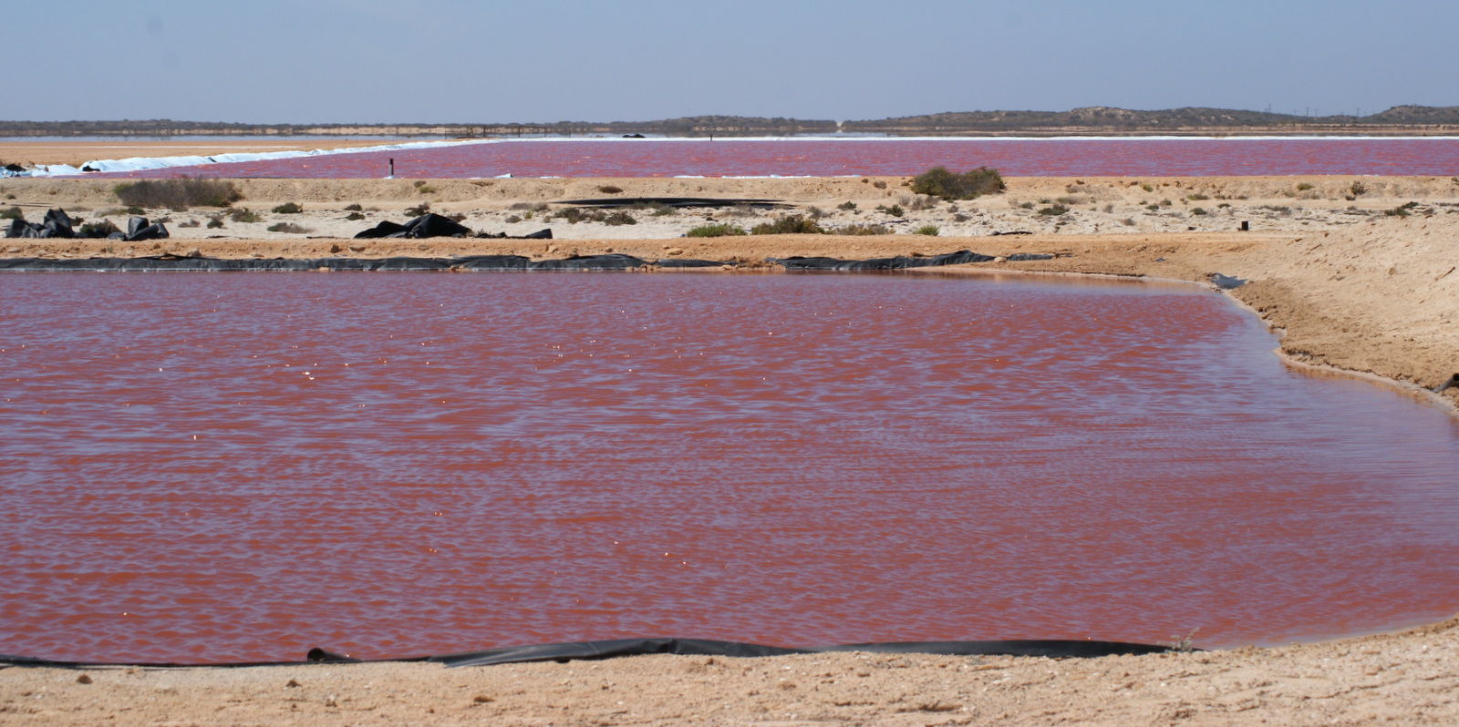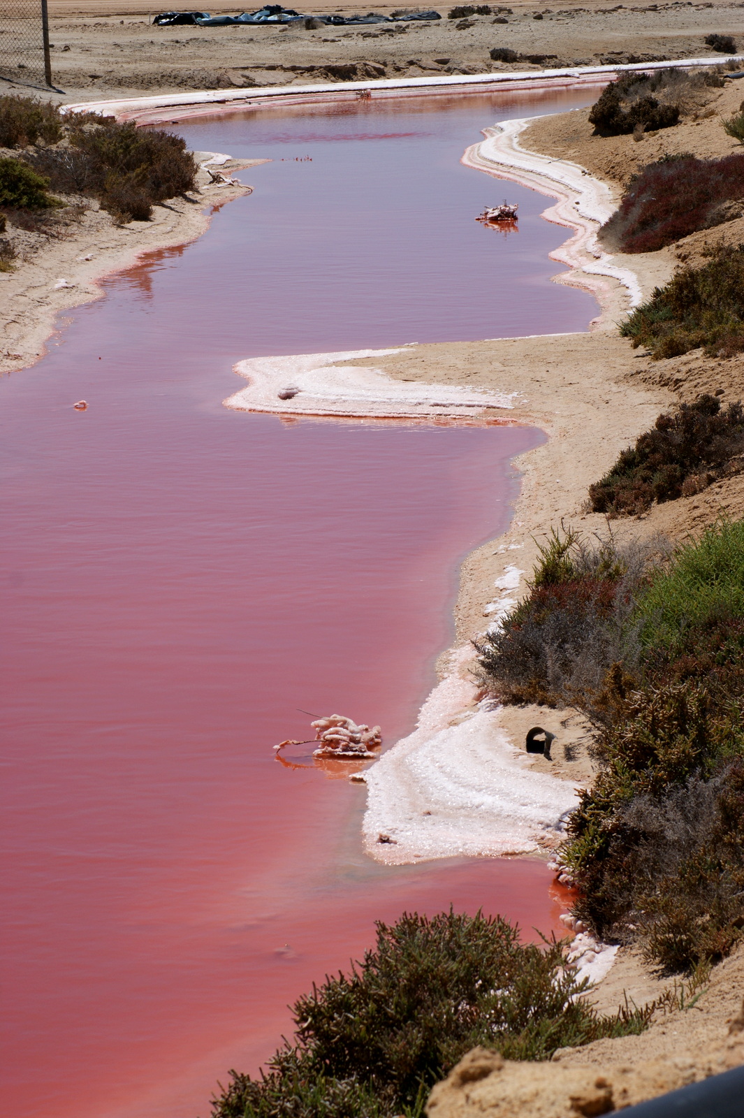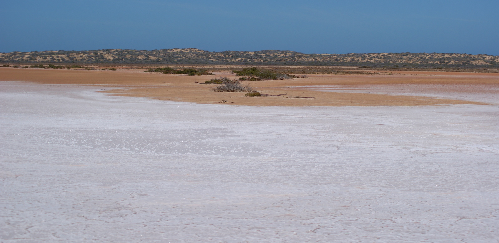 A mi-chemin de la route bitumée jusqu’aux Blowholes, on commence à longer les marais salants du Lake Macleod… Du rose, du bleu, du vert, du blanc… c’est un véritable arc-en-ciel de couleurs !!!