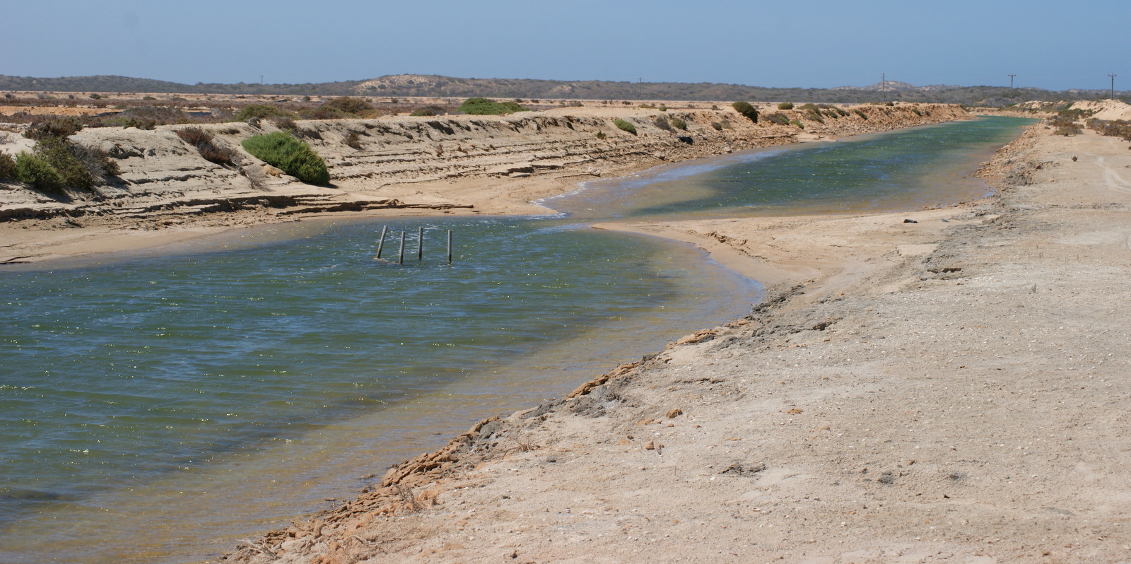 54 kms plus loin, sur une piste de plus en plus difficile où il faut sans cesse être vigilant pour éviter les chèvres et les kangourous qui ont la fâcheuse manie de traverser juste devant la voiture, Red Bluff est un autre endroit où on peut camper.