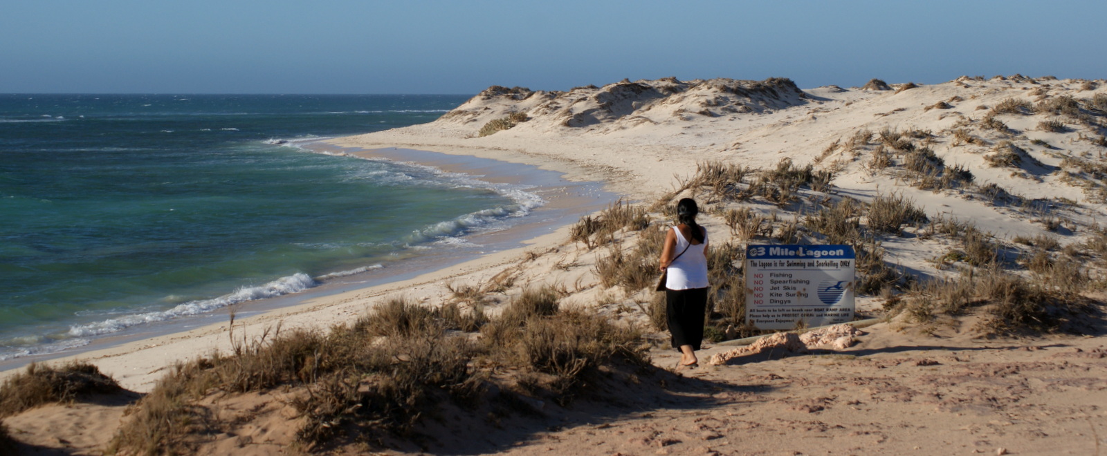 Pas grand-chose à faire sur place à part aller se baigner à Gnaraloo Bay ou entreprendre l’ascension de la dune pour rejoindre l’océan. C’est une grosse grosse balade parce qu’elle est immense et on se sent vraiment tout petits dans cet environnement sauvage et majestueux où la station est perdue au milieu de nulle part…