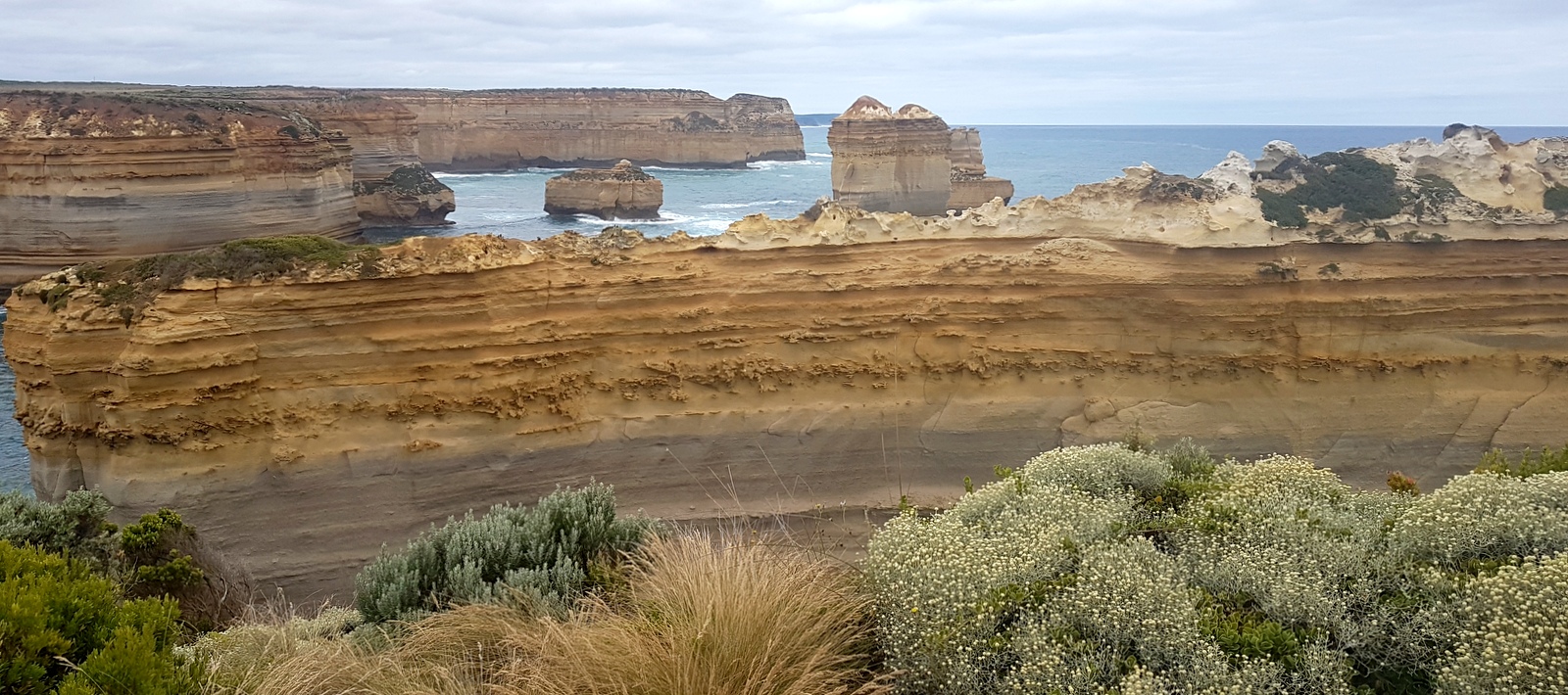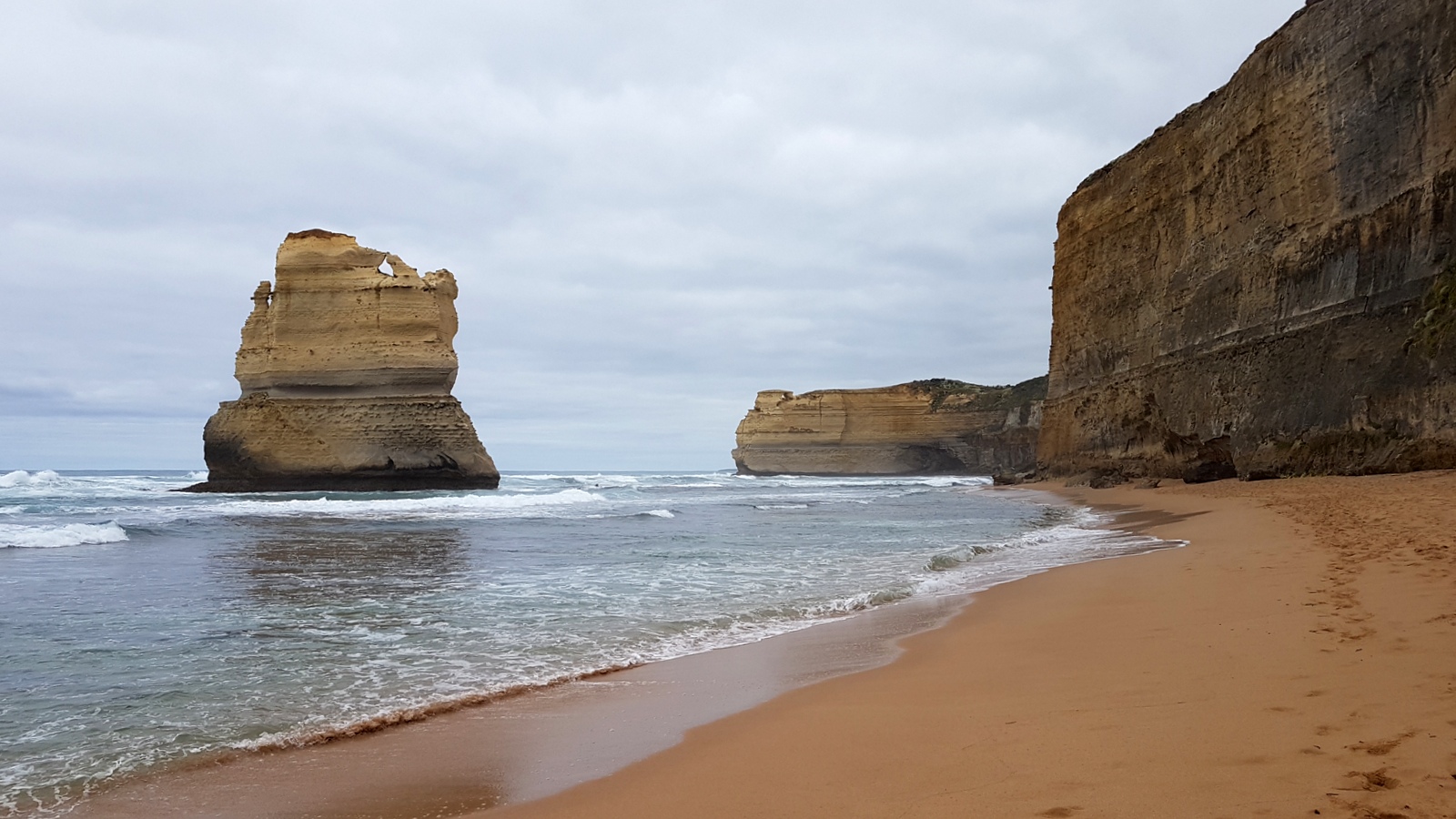 Ces 12 Apôtres, qui ne sont plus que 7 depuis que le dernier s’est effondré en 2009, sont des pics rocheux qui s’élèvent jusqu’à 45m de hauteur. Ils sont répartis le long de la côte sur 4 kms entre le 12 Apostles Lookout et The Razorback.