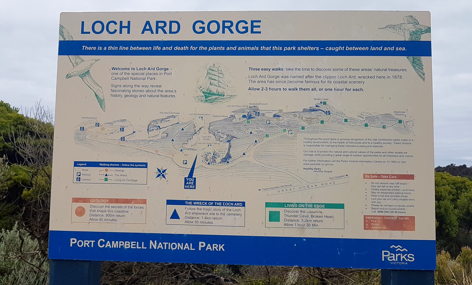 4kms plus loin, le parking gratuit de Lord ARD GORGE permet de visiter les 8 sites suivants:
