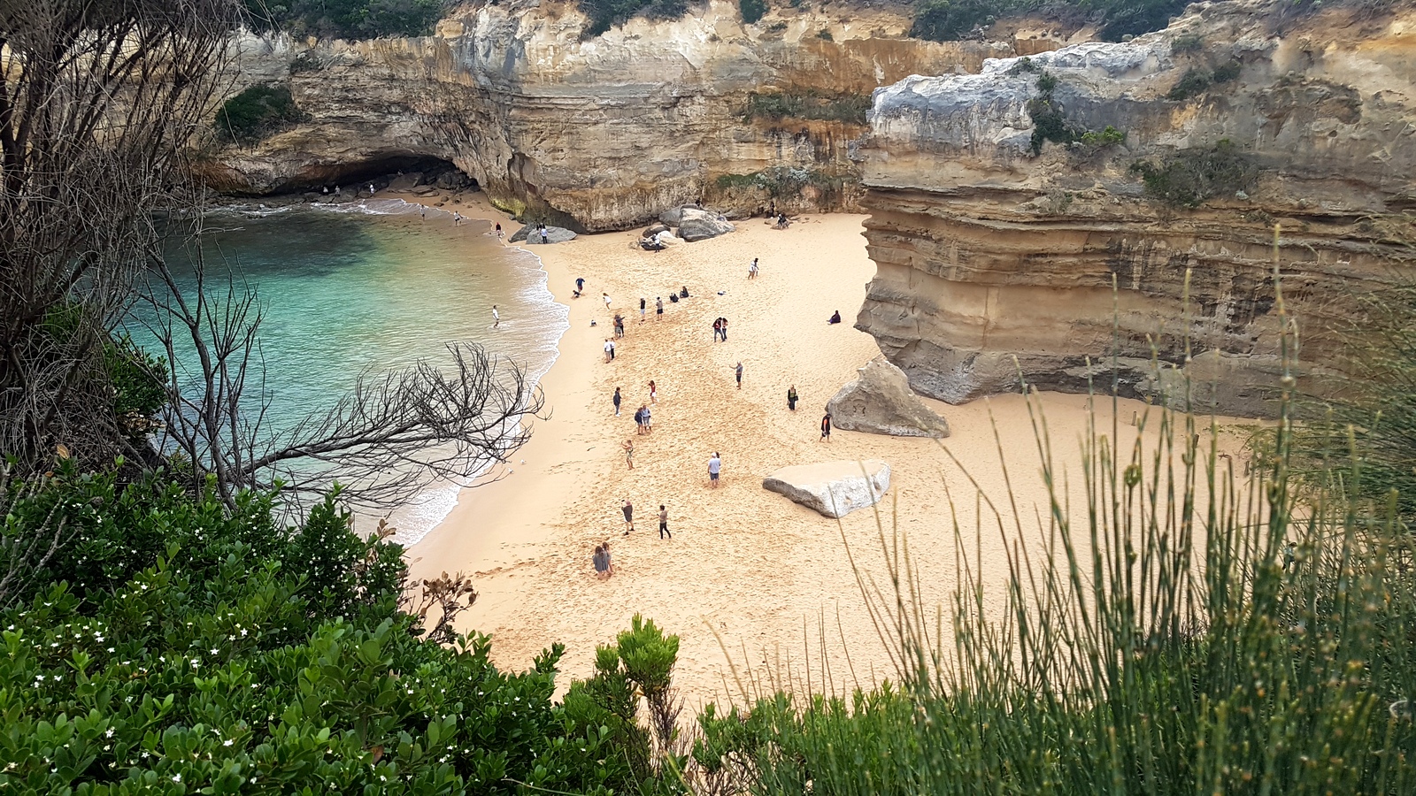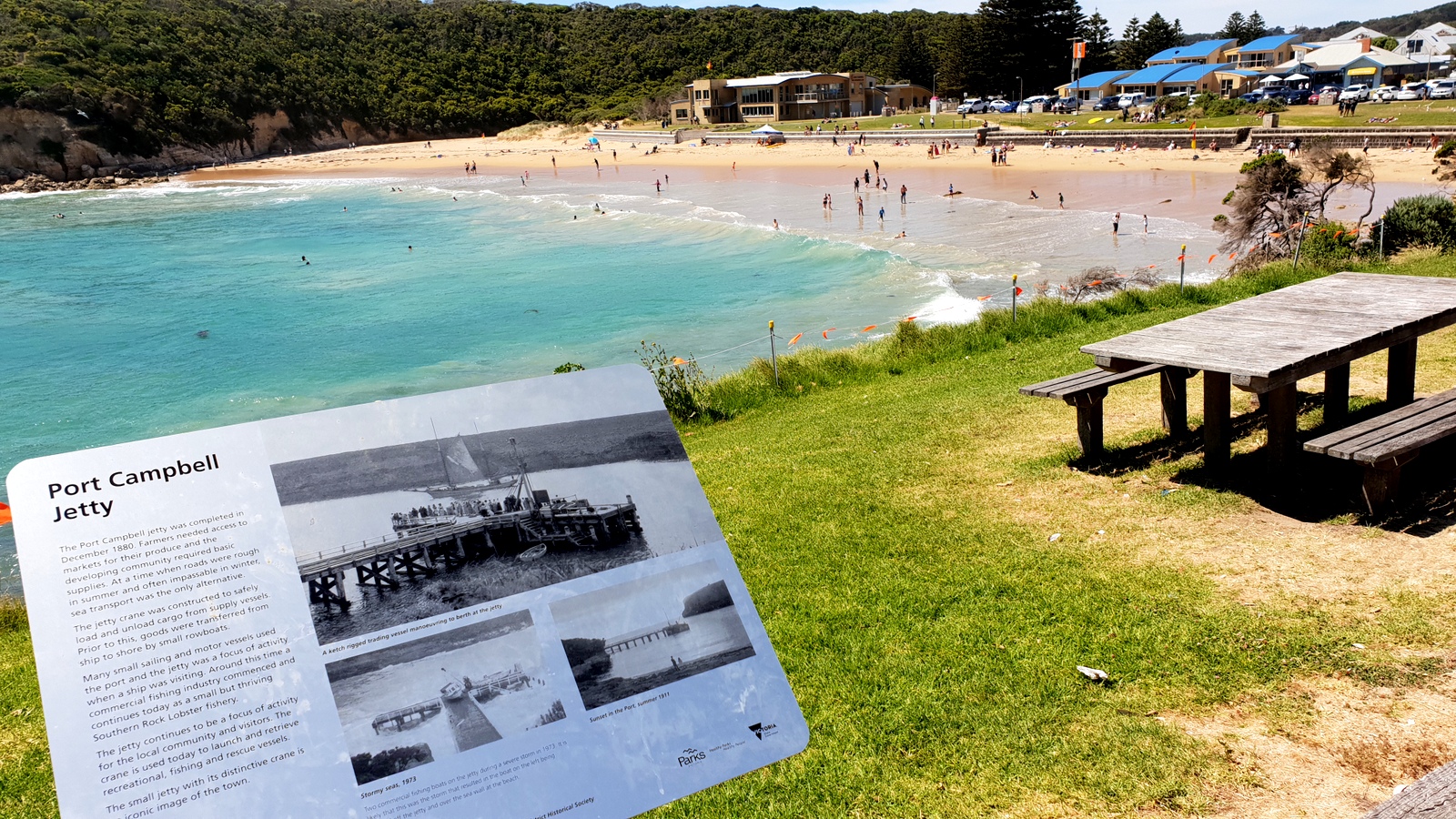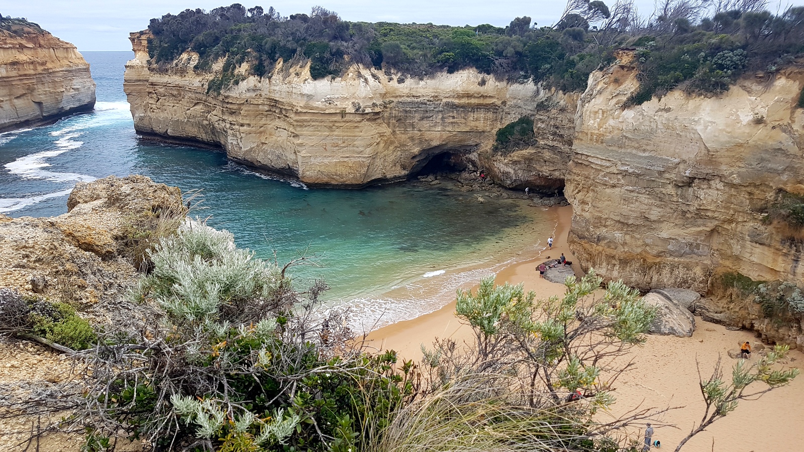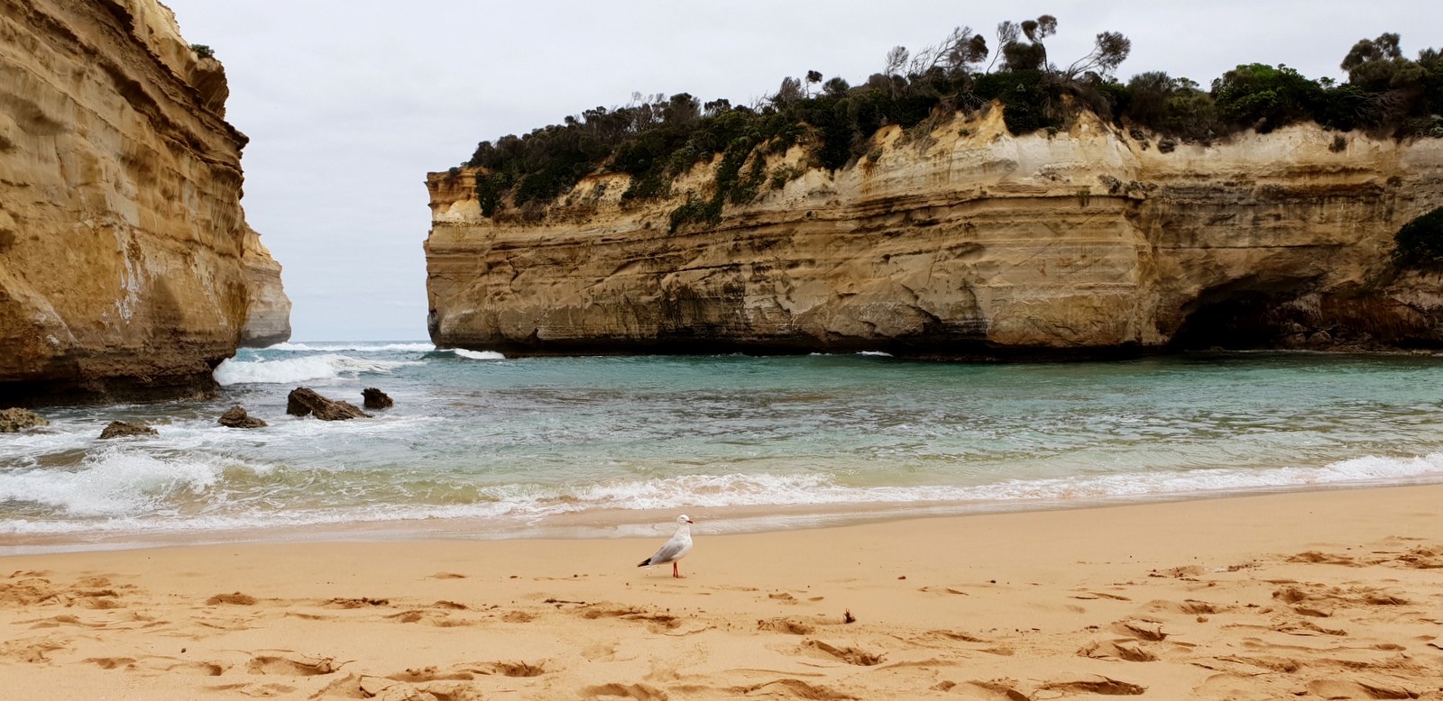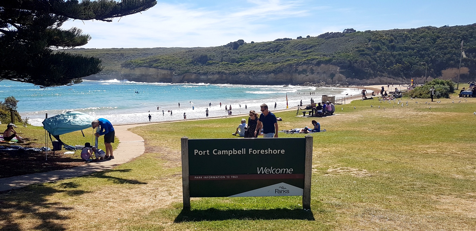 C’est dans le joli petit village de Port Campbell qu’on fait notre étape déjeuner. Le contraste entre la côte déchiquetée par l’océan et le calme de la petite crique familiale est frappant!