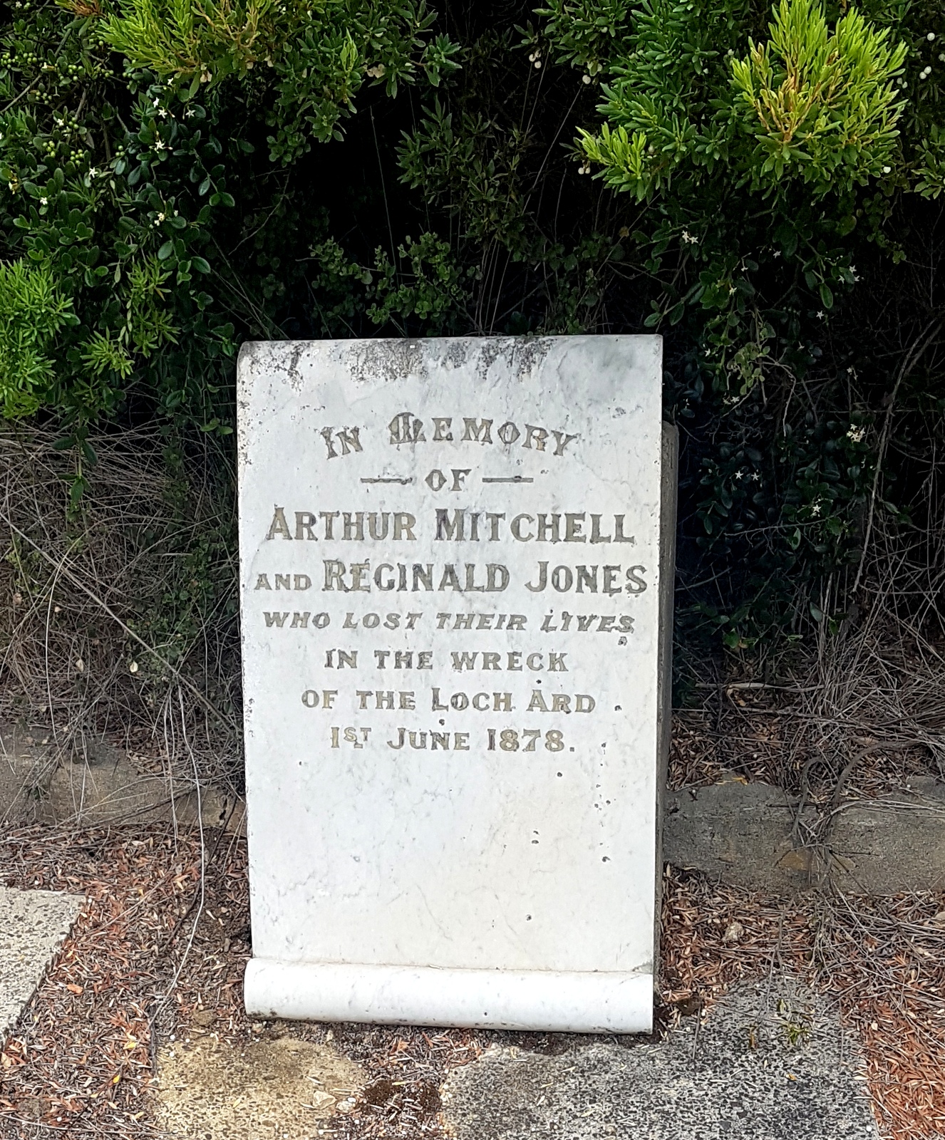 C’est là où reposent les quelques corps retrouvés après le naufrage. Ils ont été enterrés dans des cercueils fabriqués avec les restes de l’épave. Il y a également les tombes de certains migrants habitant la région à cette époque.