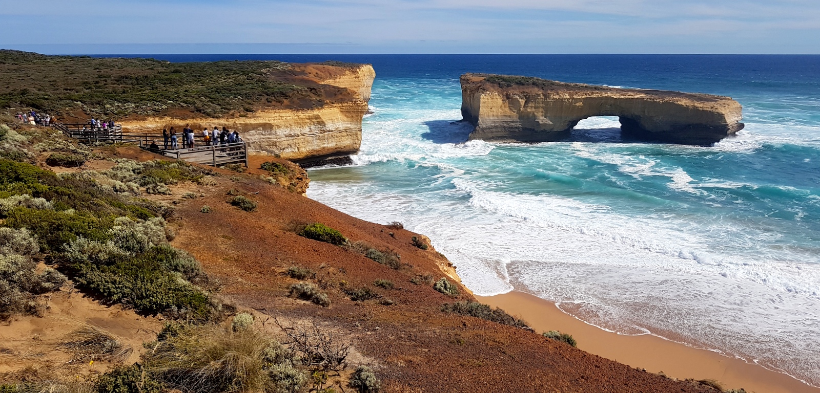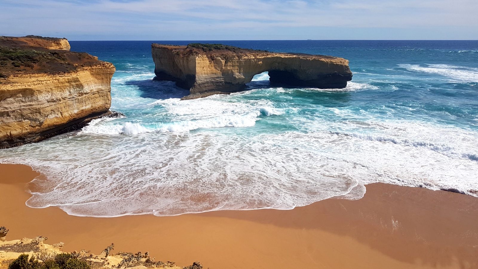 6 kms après Port Campbell, The Arch est une magnifique formation rocheuse formant une arche de 8 m de haut constamment « lavée » par l’océan. Elle est accessible par un sentier de 150 m depuis le parking et visible depuis une petite plateforme d’observation.