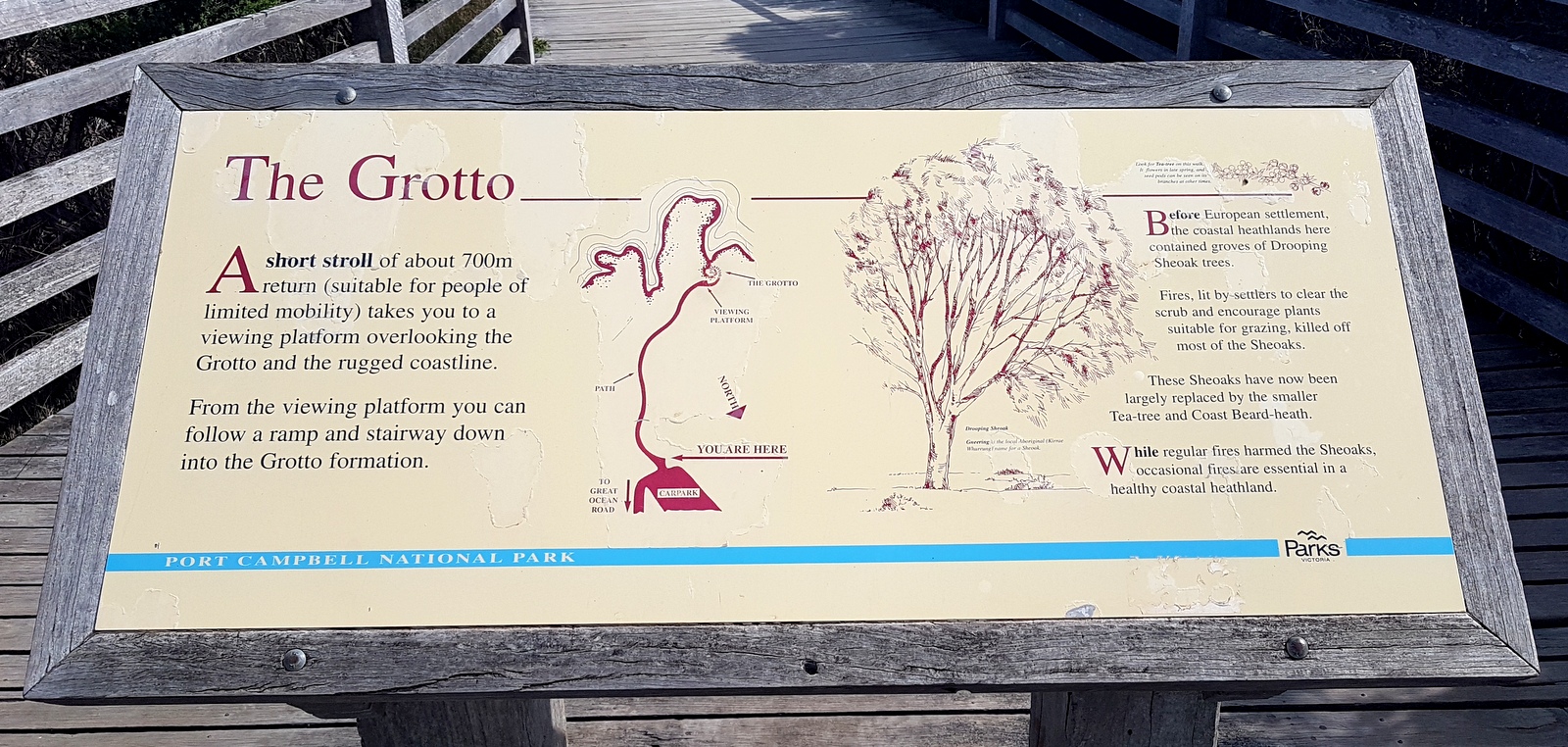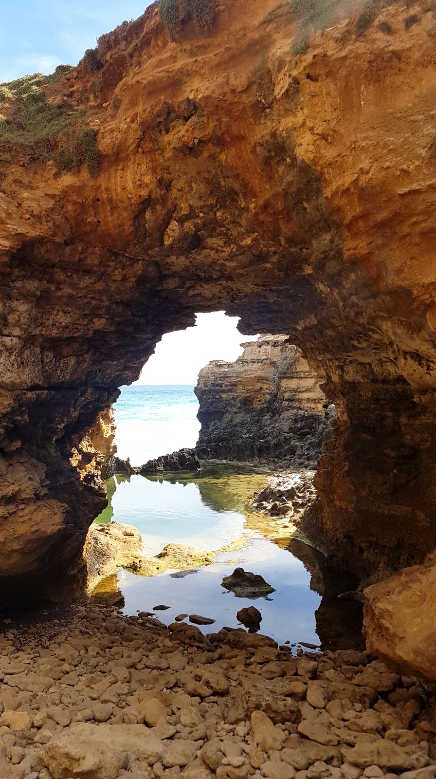2 kms de route plus loin, The Grotto est une autre véritable œuvre d’art de la nature: un trou naturel dans la falaise qui s’ouvre tel une fenêtre sur l’océan à marée haute et une « piscine » à marée basse! Pour ne pas l’approcher de trop près, elle est entourée d’un petit muret protecteur.