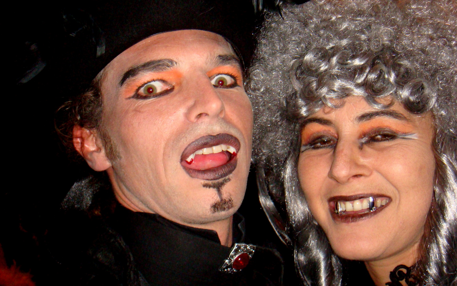 La seule chose qu’on a rajoutée à nos costumes gothiques du carnaval de Venise, ce sont des dents de vampires, couleur naturelle tachées de sang pour mon compagnon, chromées avec un strass pour moi que nous avons commandées sur internet…