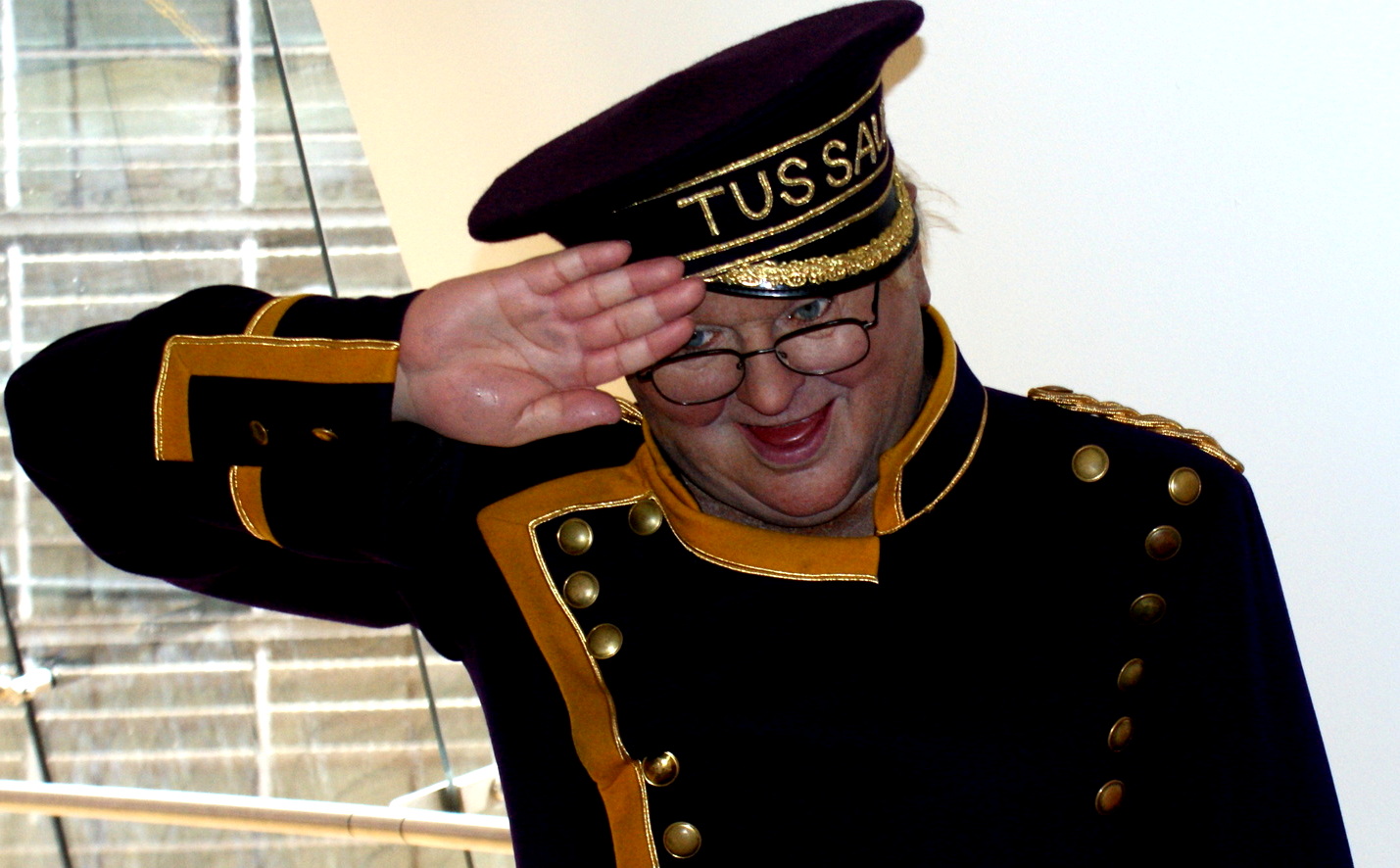 Un prédicateur qui fait son sermon et à qui je montre mes dents nous identifie au diable en hurlant… On est bombardés de questions: d’où on vient? De quelle planète? (véridique!) D’où viennent nos costumes? Est-ce-que ce sont de vrais costumes historiques?… C’est de la vraie folie, heureusement, très vite, 2 « anges » américains et un « malheureux décapité » anglais s’imposent en gardes du corps pour nous escorter jusqu’à la parade…