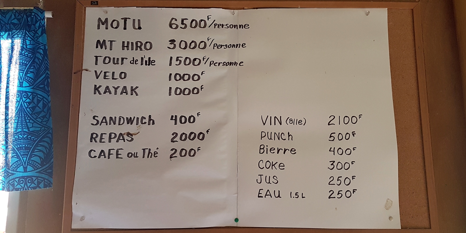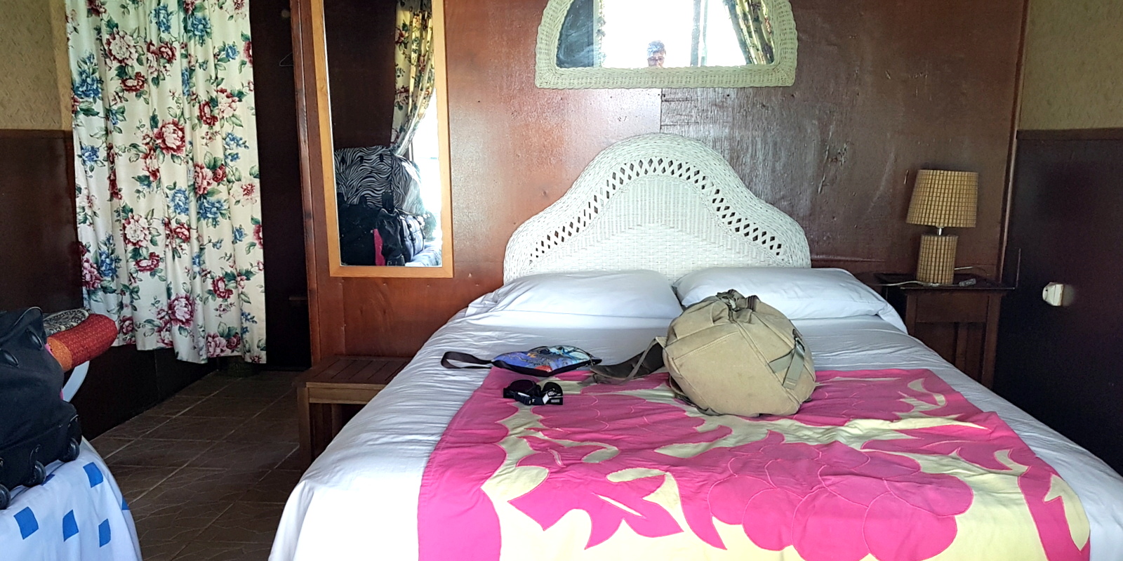 C’est la pension la plus proche de l’aéroport. La déco des chambres et la couleur vert laitue de la maison sont un peu kitch mais la demi-pension à 6 500XPF (54,50€) par personne est imbattable…