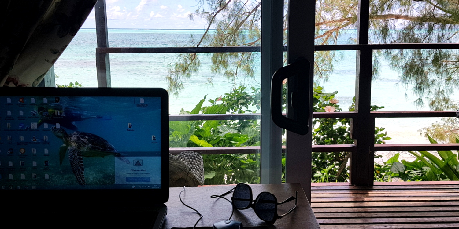 On nous avait recommandé cette pension pour plusieurs raisons mais principalement la personnalité et la cuisine d’Eléonore, la propriétaire. J’avais lu qu’on pouvait y assister à de somptueux couchers de soleil depuis la terrasse des bungalows plage et passer quelques jours sur un motu dans une cabane. De plus, il était dit sur le site qu’on pouvait payer en carte de crédit, pratique sur une île où il n’y a pas de banque !!!