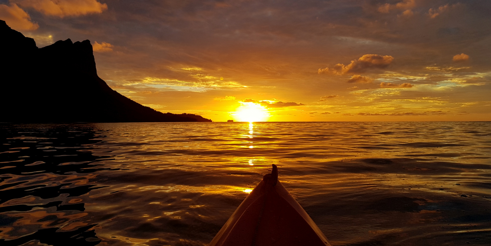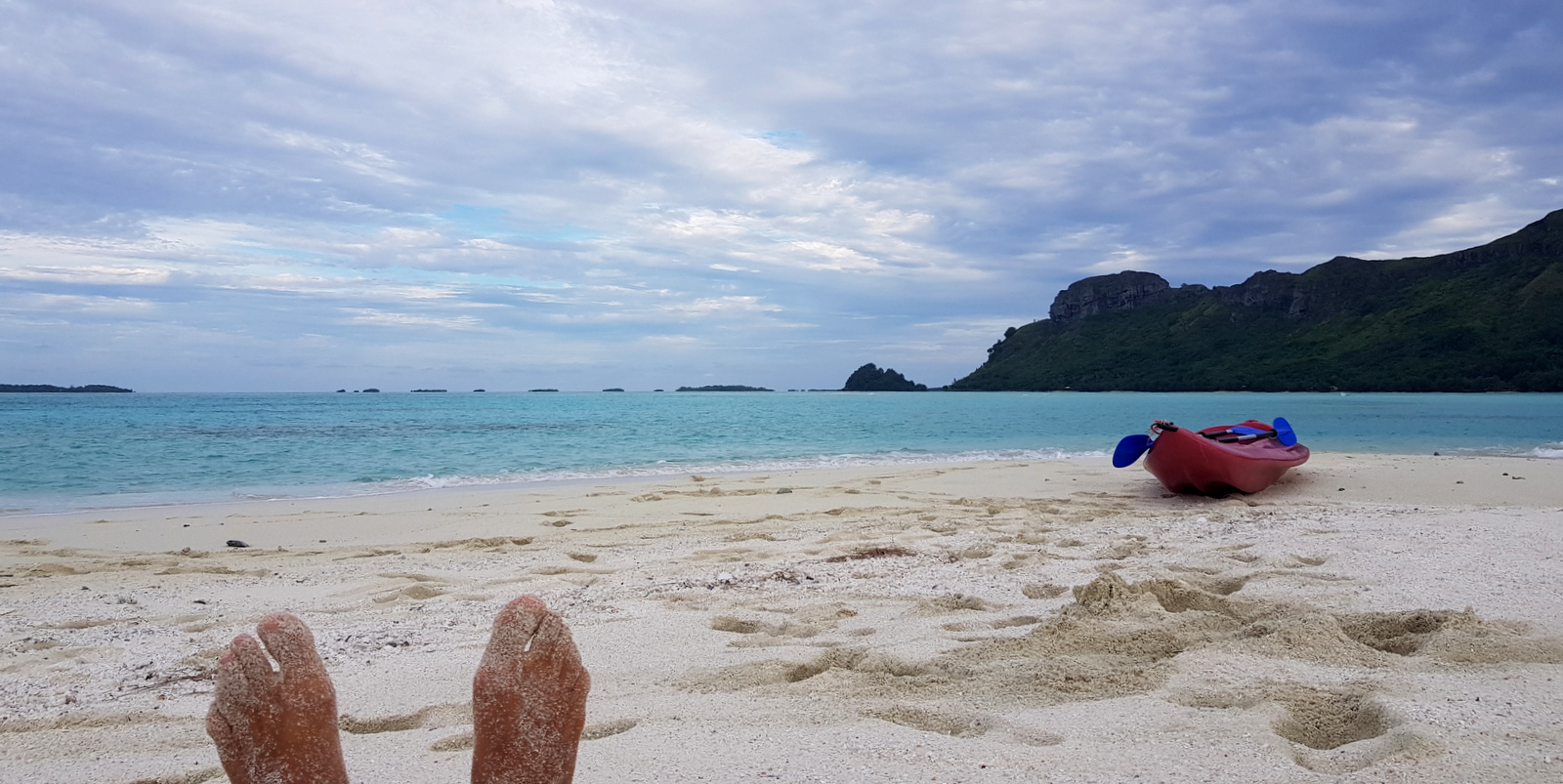 Quant au coucher du soleil, le meilleur moyen pour le voir, c’est de prendre un kayak (1000 CFP/séjour) et d’aller sur le superbe banc de sable à environ 300m au large dans le lagon…