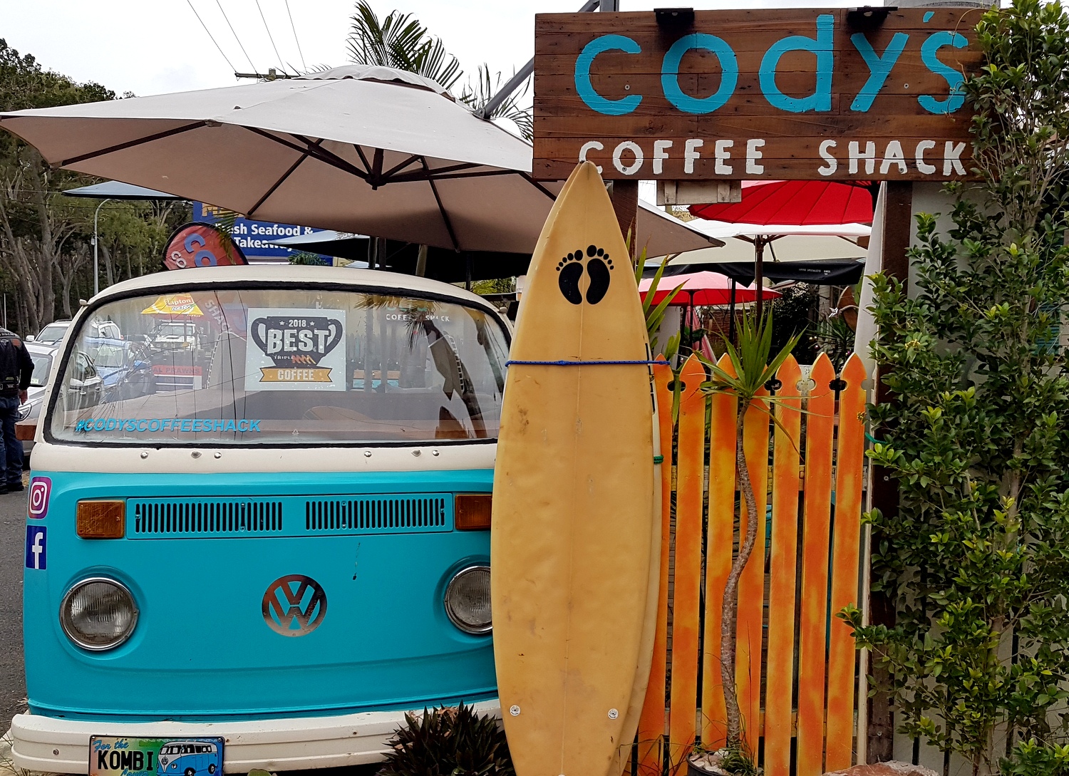 Sur l’esplanade. Les plats de nouilles à 17 AU$ (11€), entre autres, sont copieux et excellents. - CODY’S COFFEE SHACK, 400 Charlton Esplanade, Torquay, Hervey Bay.