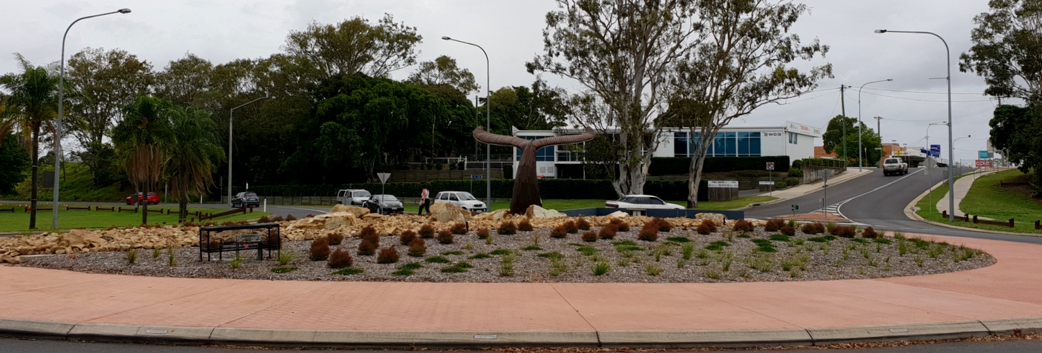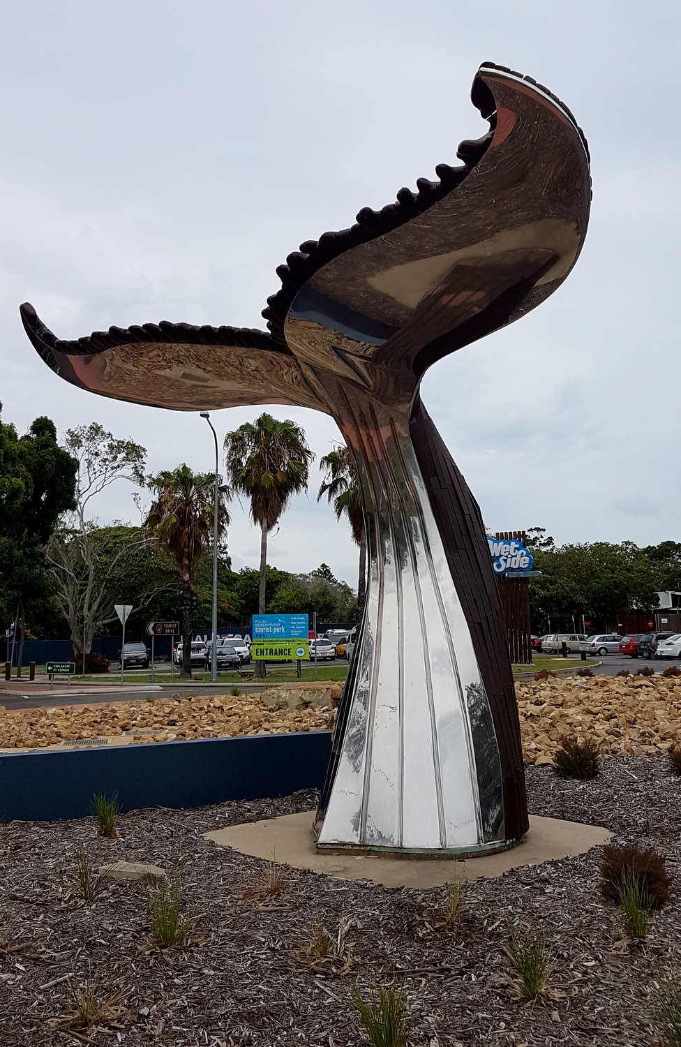 – « Nala » à l’intersection de Main St et de Old Maryborough Rd. La petite dernière et la plus grande: 8,30m de haut sur 14,80m de large, 22 tonnes de bois et métal, elle a été construite en hommage à la vraie Nala qui vient tous les ans à Hervey Bay depuis 1992 !!!