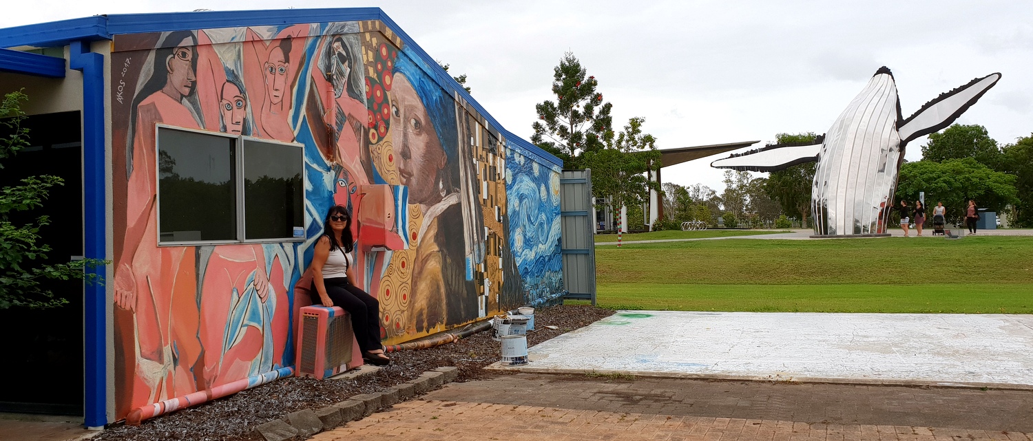 6) Admirer la fresque murale d’Akos Juhasz sur le mur du Fraser Coast Creative Space au croisement de Main Street et de Old Maryborough Road, à côté de « Nala », la statue de la baleine.
