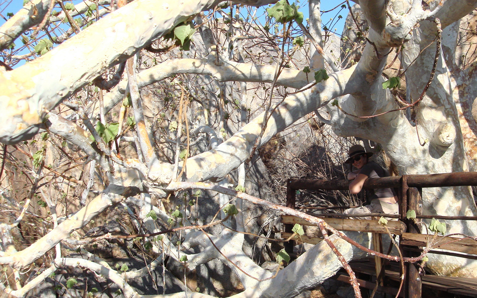 Le camp est désert, nous sommes les seuls (pour ce qu’on croyait, en fait, on partagera le camp avec une bande de babouins!). Leur logo: « Vous pourriez oublier que la civilisation a un jour existé » est véridique.
