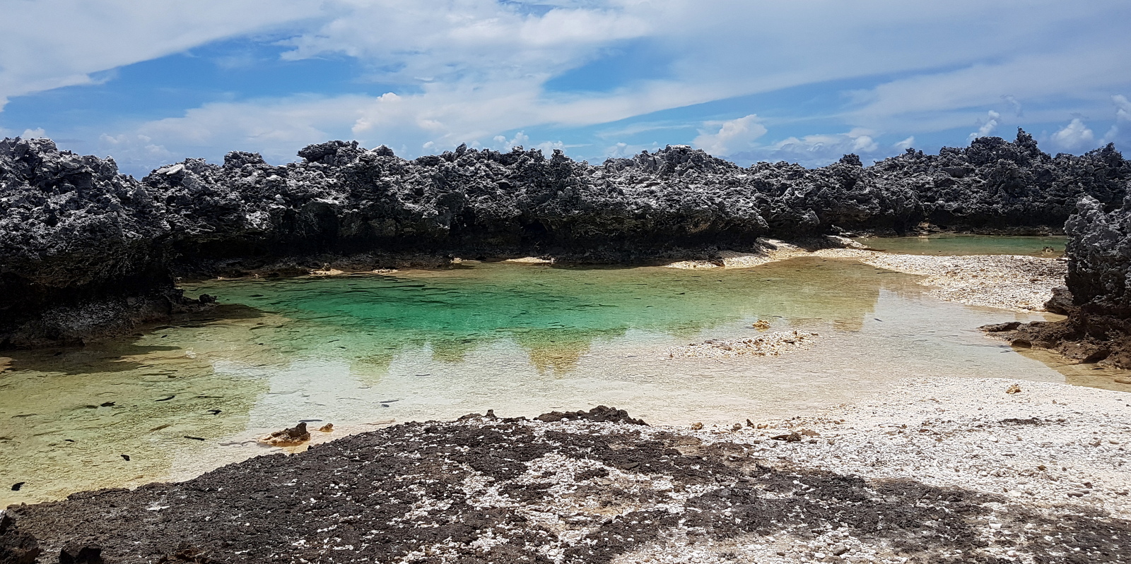 Et c’est parti pour la découverte d’un des sites les plus extraordinaires de la Polynésie. C’est en fait une grande barrière de corail composée d’excroissances (feo) qui peuvent atteindre plus de 2 mètres! Cet enchevêtrements de feos crée une espèce de labyrinthe qui emprisonne l’eau dans de nombreux bassins et piscines naturelles dans lesquels on peut se baigner dans une eau turquoise cristalline, riche en magnésium.