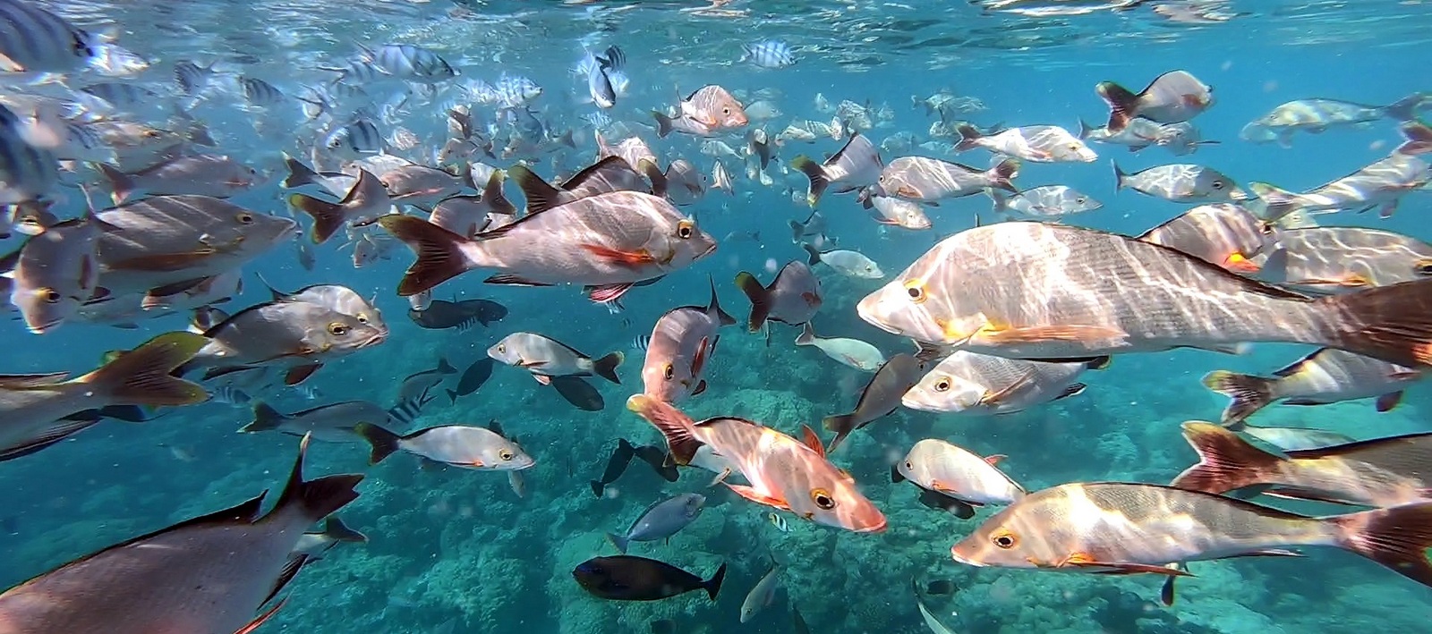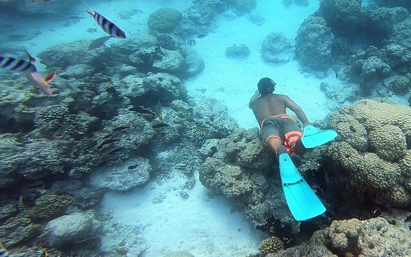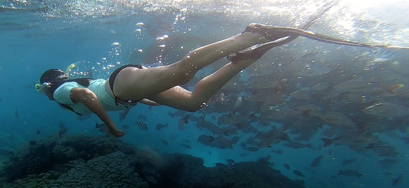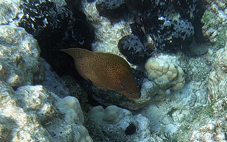 Il y a tellement de poissons qui nous accueillent, espérant quelques résidus de notre pique-nique, qu’on doit sauter dans une masse grouillante et multicolore… L’eau est chaude, cristalline et les poissons innombrables. C’est vraiment un aquarium !!! On croisera des requins ,des murènes… C’est d’ailleurs souvent là que sont organisés les baptêmes de plongée bouteille…