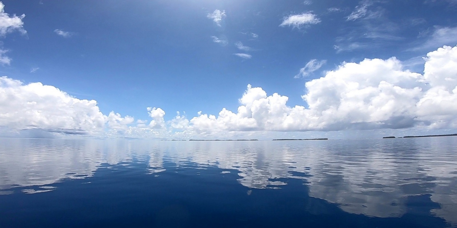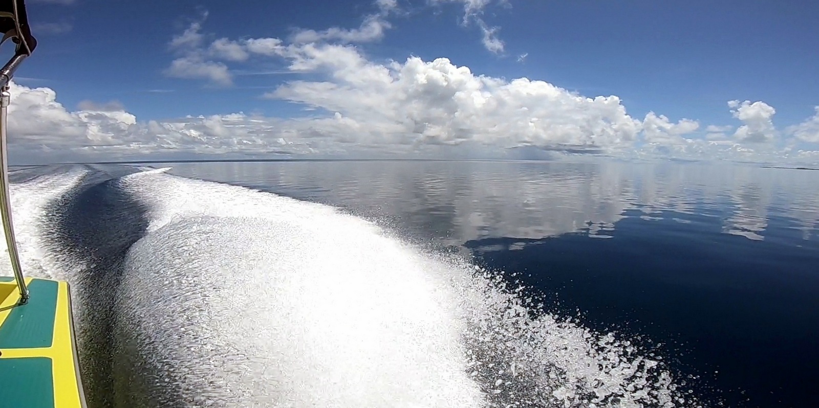 La traversée en bateau est plutôt calme et le spectacle des nuages se reflétant sur le lagon bleu marine est saisissant…