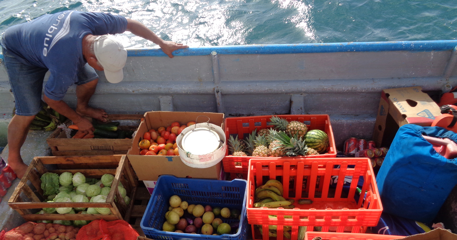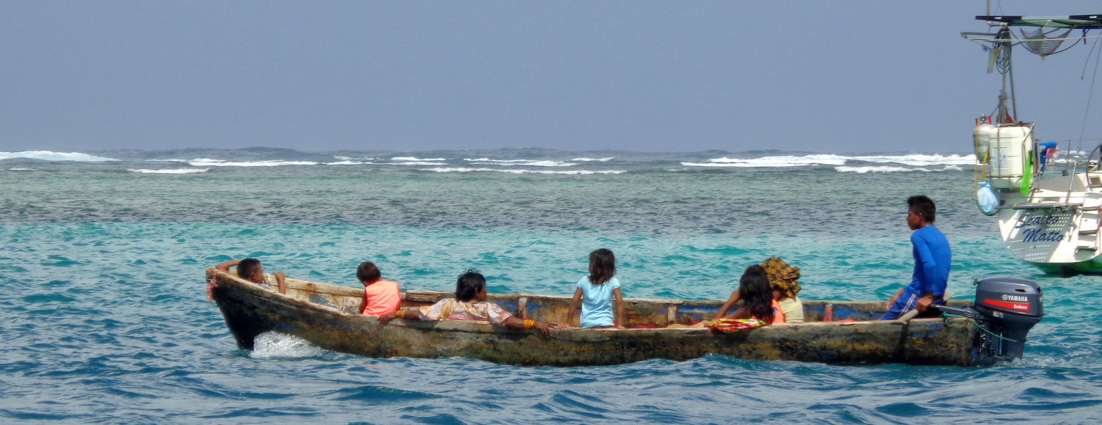 Des Kunas nous accostent avec leur bateau traditionnel pour vendre leur artisanat, leur pêche du jour ou des fruits et légumes cultivés sur le continent…