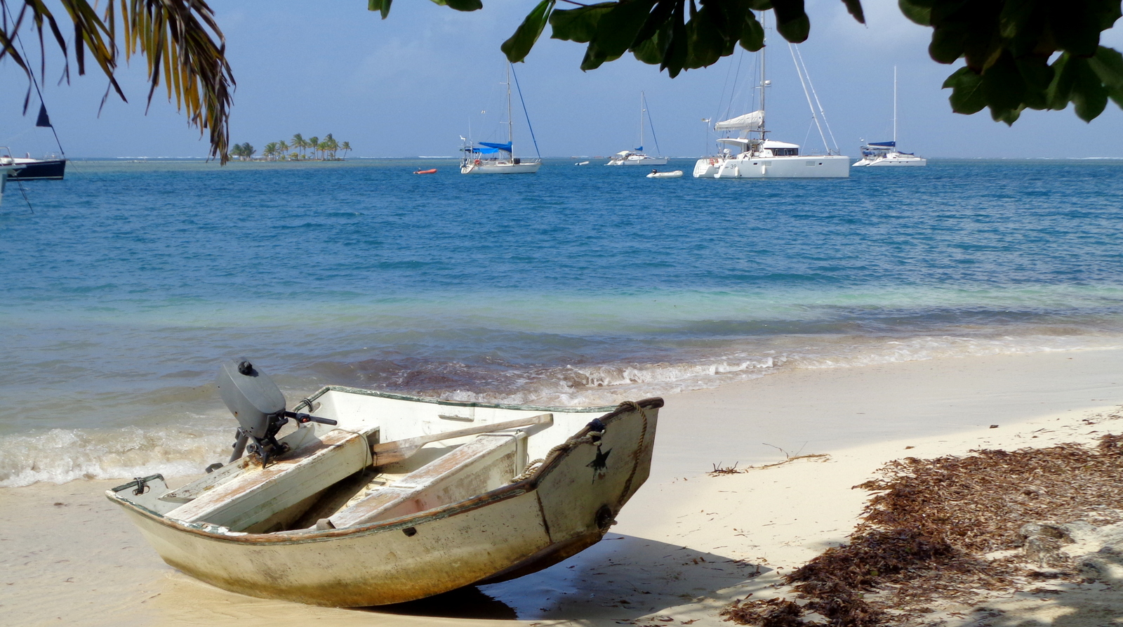 Lou nous dépose régulièrement sur les îles avec l’annexe pour qu’on puisse aller observer les fonds sous-marins jonchés d’étoiles de mer… C’est aussi l’occasion de se prendre un bière ou une coco dans la cabane locale…