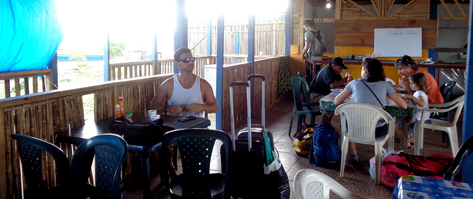 Nous retrouvons notre petite femme Kuna qui nous demande d’attendre une bonne heure avant que notre taxi arrive. On prend donc un petit-déjeuner au restaurant local pour faire passer le temps…