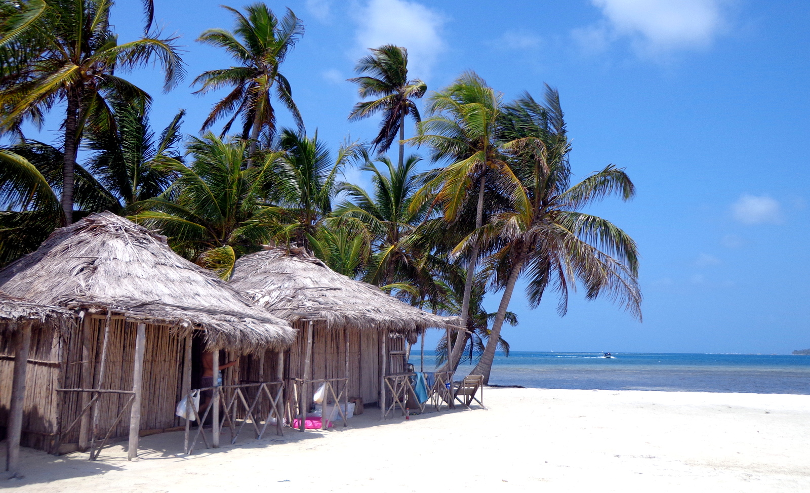 Cette île mesure environ 150m par 60. Elle est couverte de palmiers et on y trouve des cabanes rustiques où on peut dormir, un restaurant, des emplacements pour planter sa tente ( 8$/personne), des toilette et des douches. Elle est entourée de coraux sauf sur un côté où il y a une grande plage de sable blanc idéale pour la baignade et une épave de bateau que l’on peut explorer en snorkeling. N’oubliez pas votre matériel !!! Comme partout dans les San Blas, rien n’est gratuit et il faudra débourser 7$ pour un hamac et 3$ pour un siège…