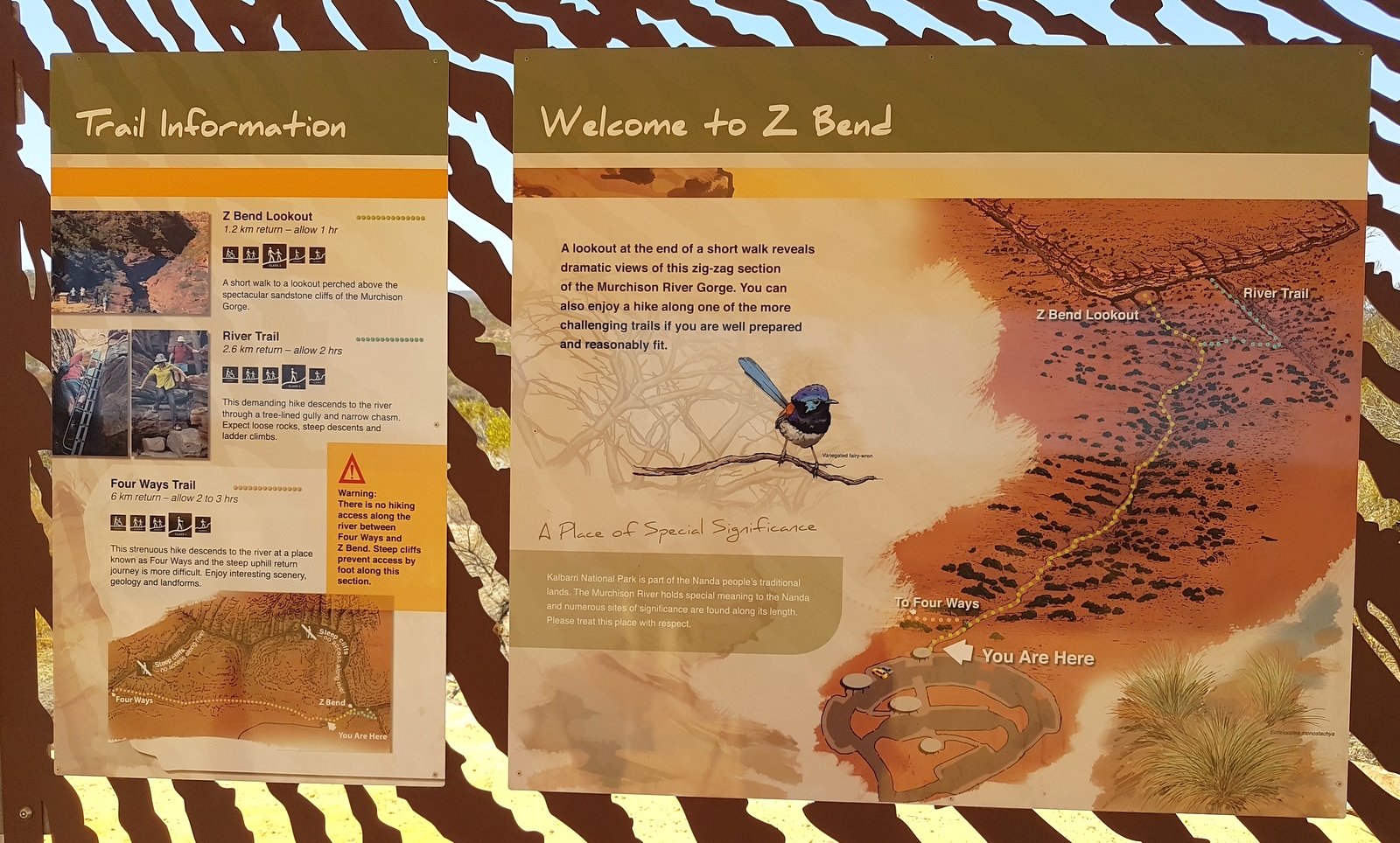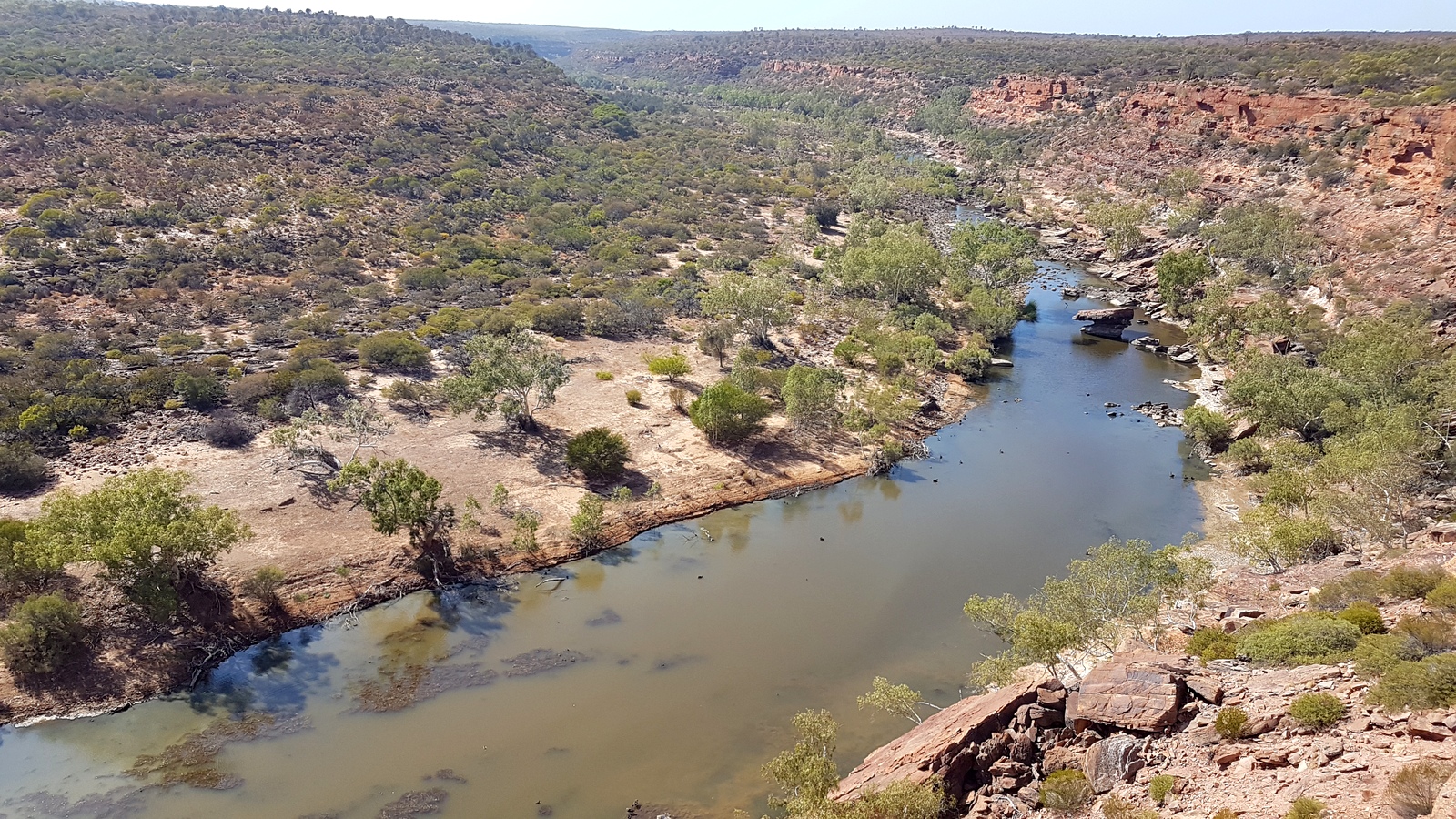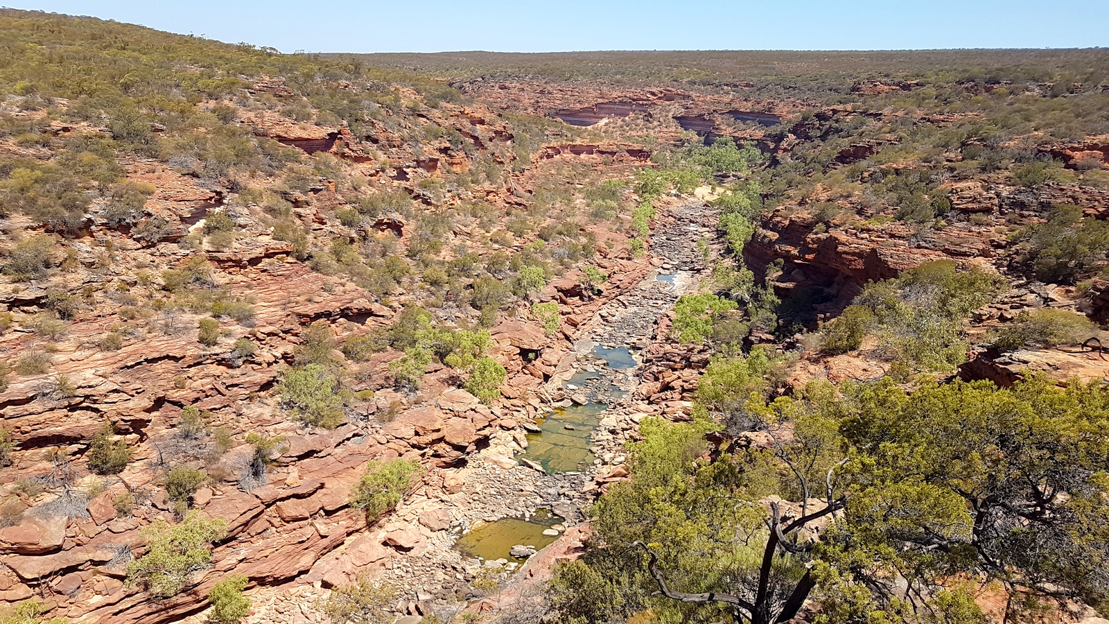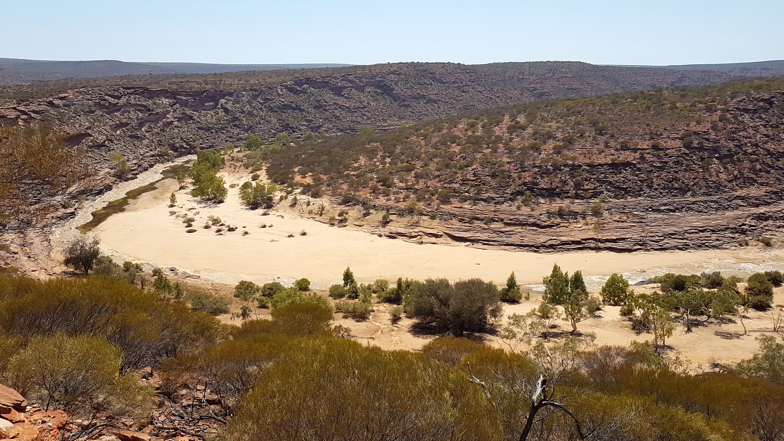 Un peu plus au sud, ce point de vue doit son nom à la courbe en Z que fait la rivière à cet endroit. Pas besoin de retourner au parking, un sentier y mène directement depuis la Nature’s Window. La végétation sur le chemin est étonnante, on croirait qu’elle a été peinte avec de l’or et de l’argent… On y croise aussi de magnifiques banksias.
