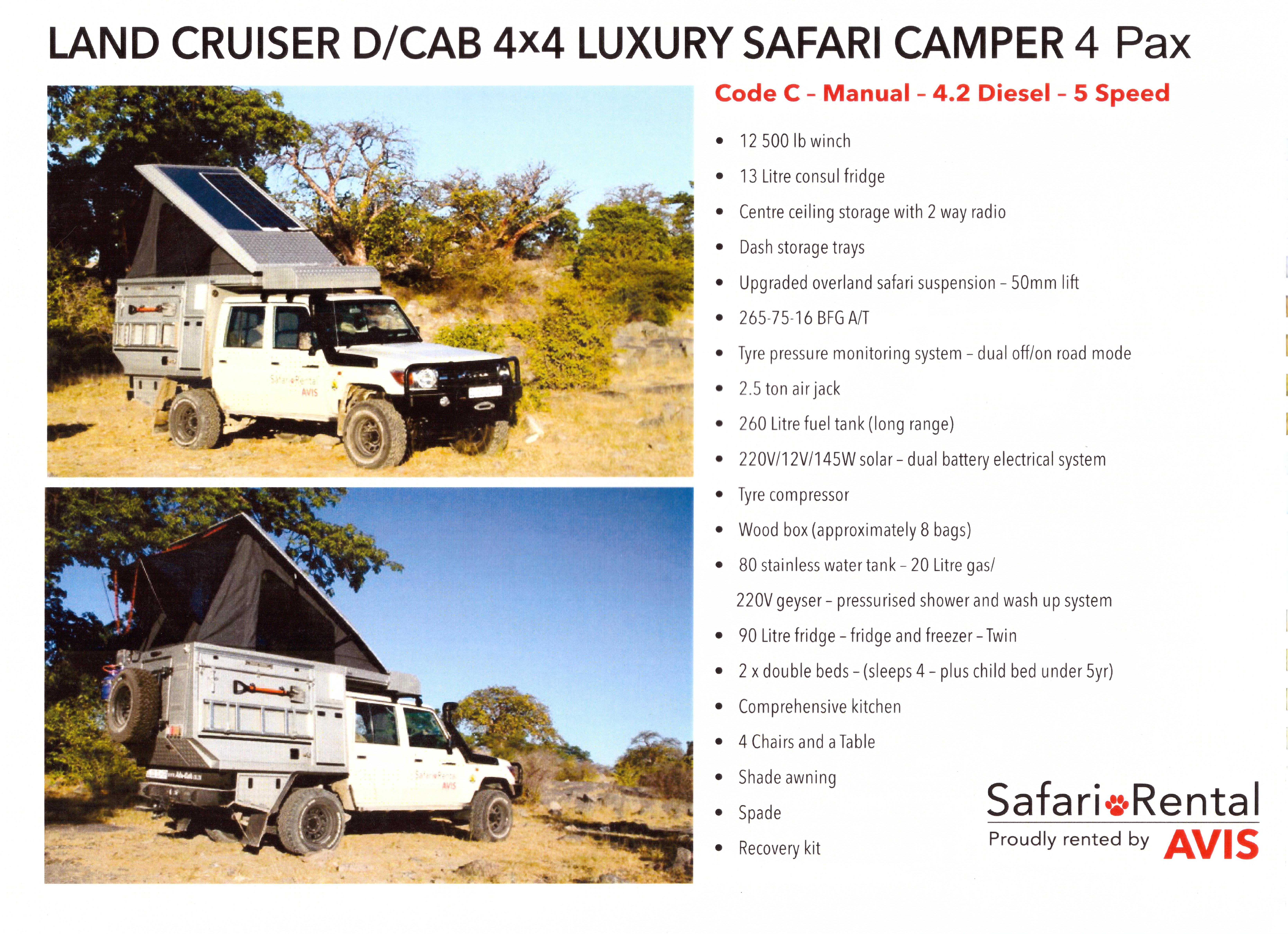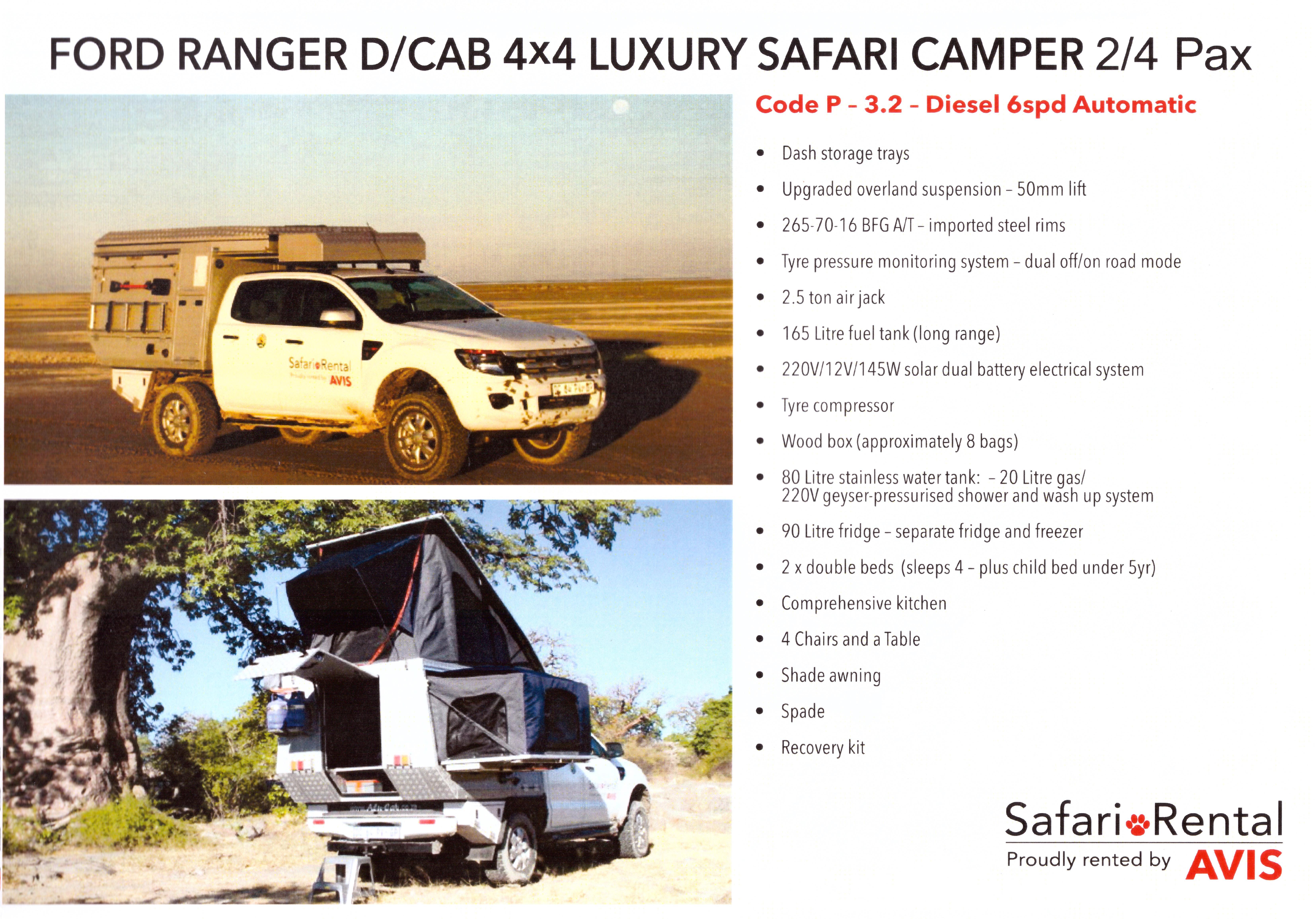 Notre préférence va au Ford Ranger D/Cab 4×4 Luxury safary Camper 3.2 Automatique, le dernier sur les photos. C’est celui qui nous semble le plus pratique et le plus robuste pour ce que nous voulons faire (et ça se vérifiera sur place).