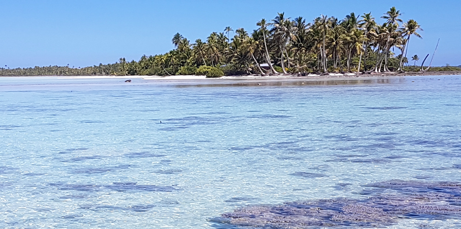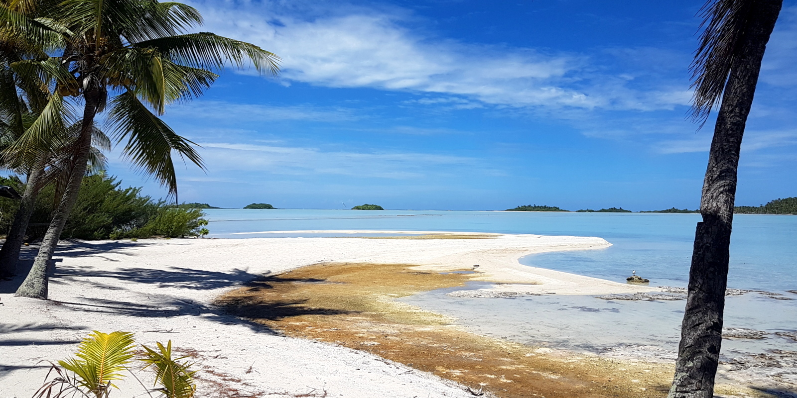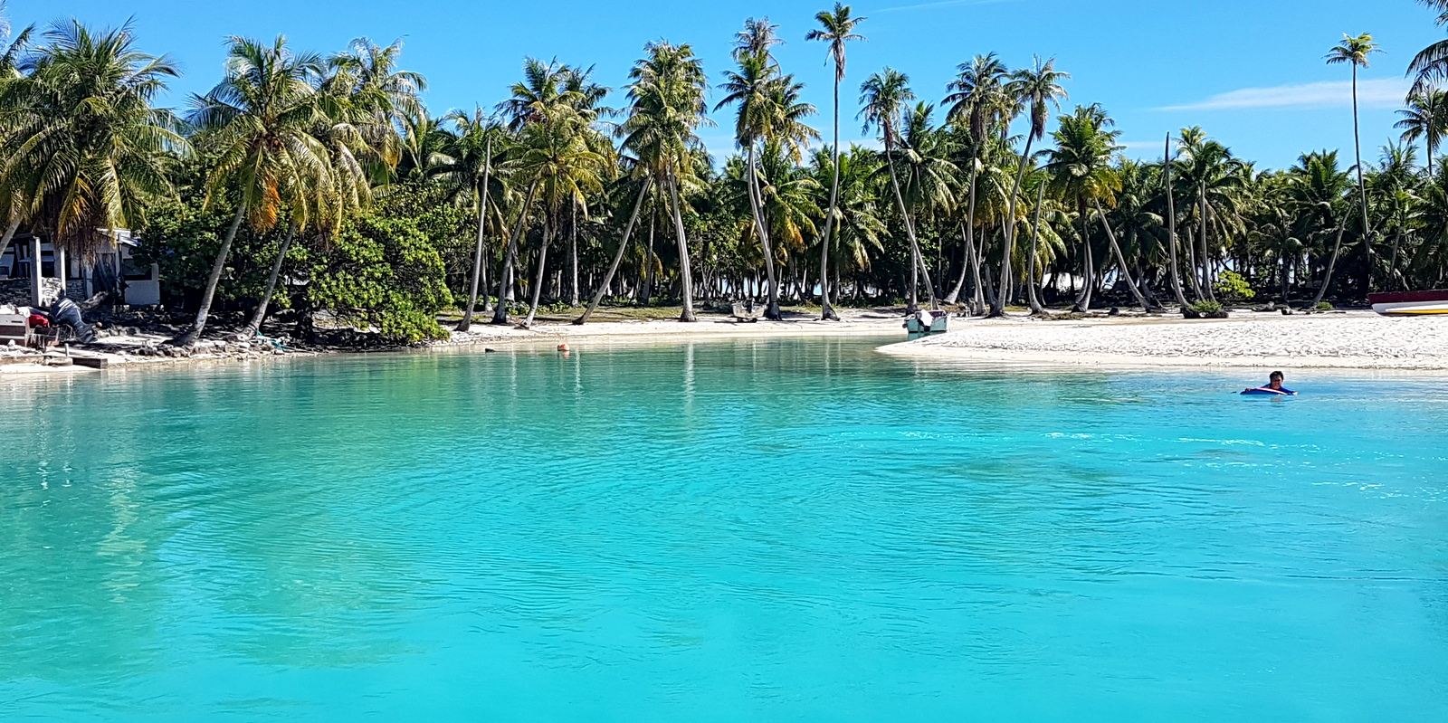 L’après-midi est consacré au farniente, nage et snorkeling dans le lagon bleu. Peu de patates de corail, donc peu de poissons, juste beaucoup de requins pointe noire complètement inoffensifs… On traverse pour aller sur le motu du KIA ORA qui commence à bien souffrir de l’érosion et on barbote dans des couleurs irréelles…